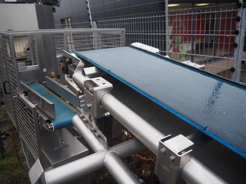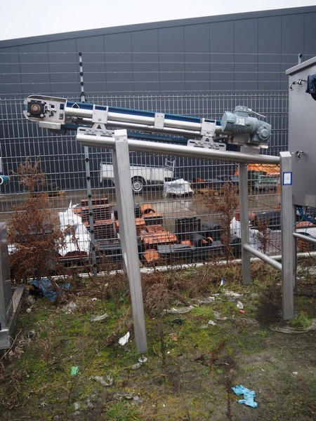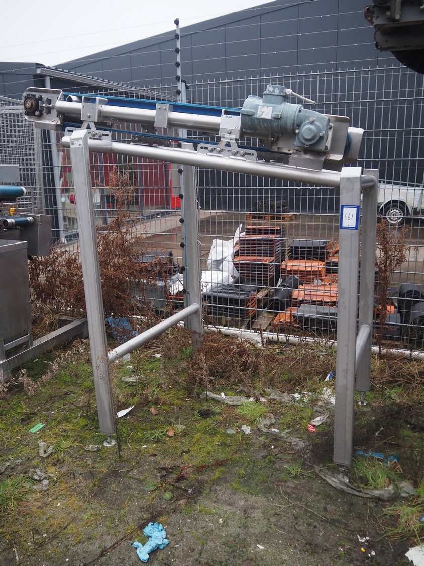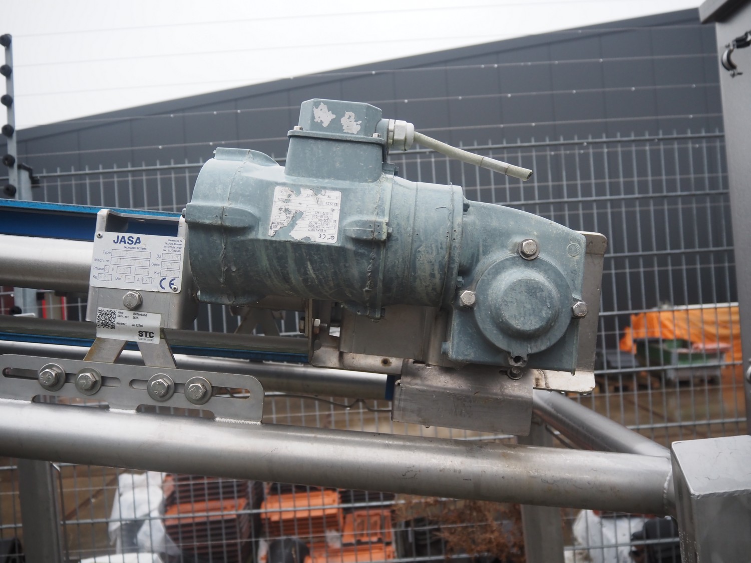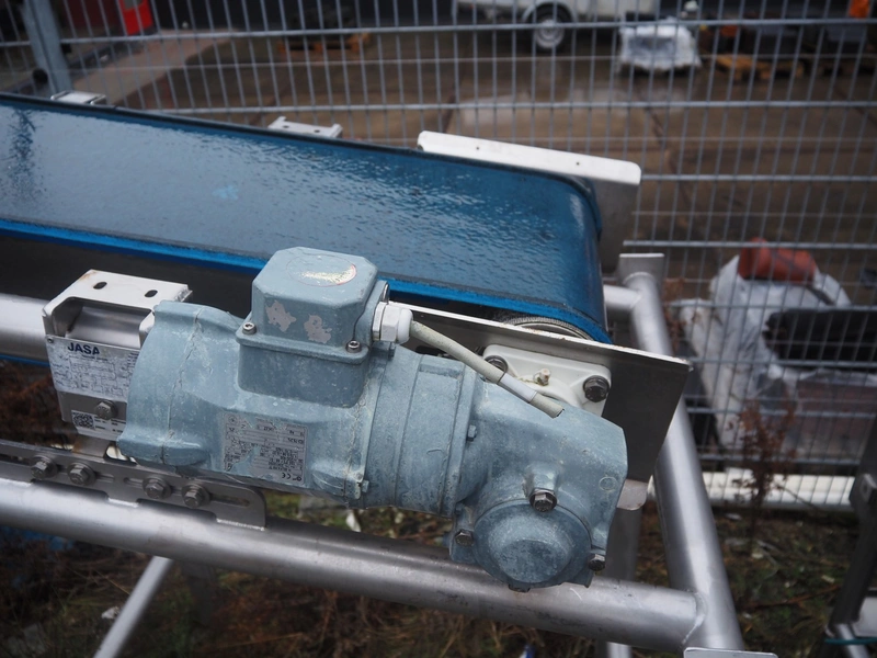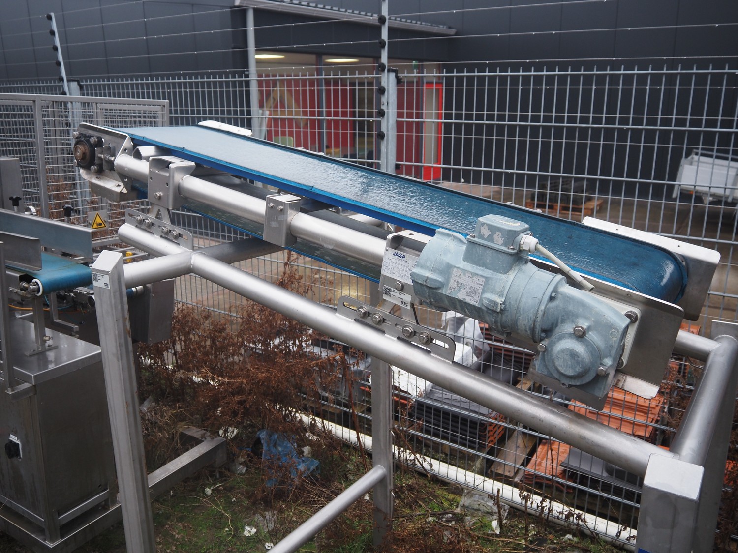 Jasa Packaging Systems elevating belt, type: Bufferband, machine number: JA 12780, serial number: 001, year of construction: 2017, machine weight: 92 kg, 230 V, 3 Ph, 0.17 A, 0.37 kW, plastic belt: 400 mm, elevating height: 1800 mm, total dimensions: 2000 mm x 1200 mm x 1980 mm.