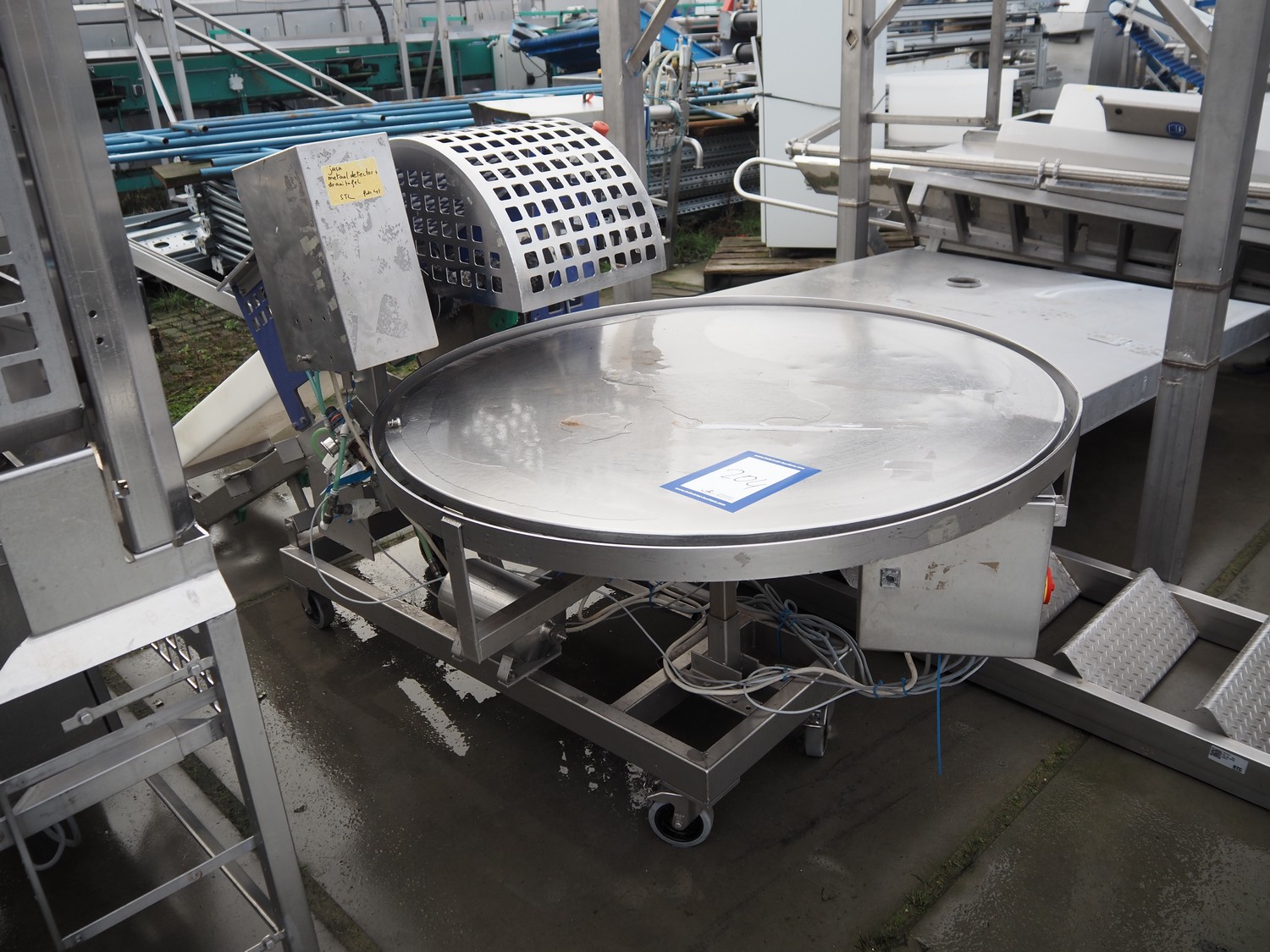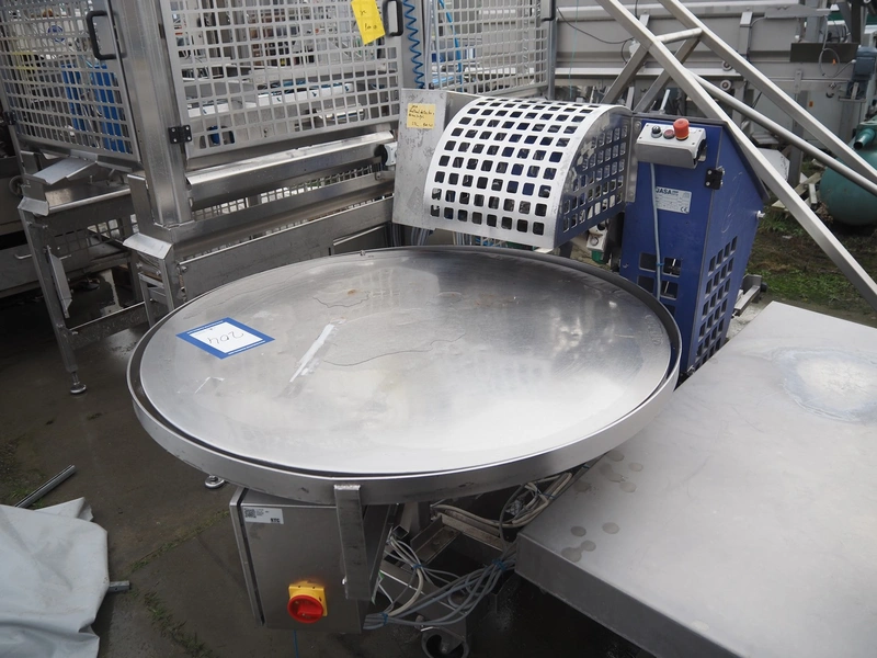 Jasa Packaging Systems mobile elevating belt with turning table, diameter table: 1190 mm, total dimensions: 1250 mm x 3200 mm x 1350 mm.