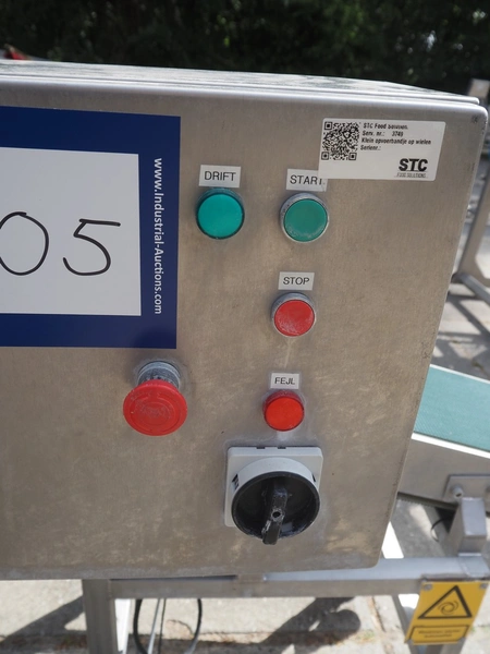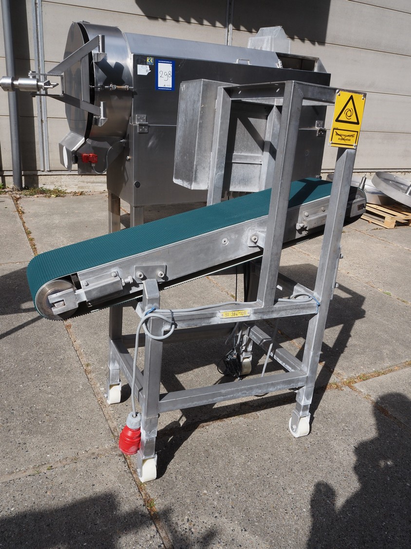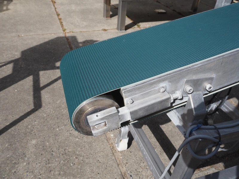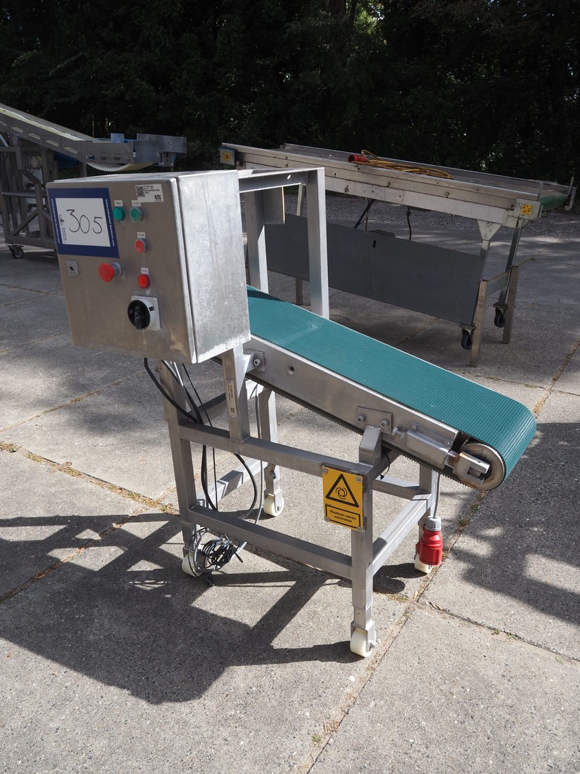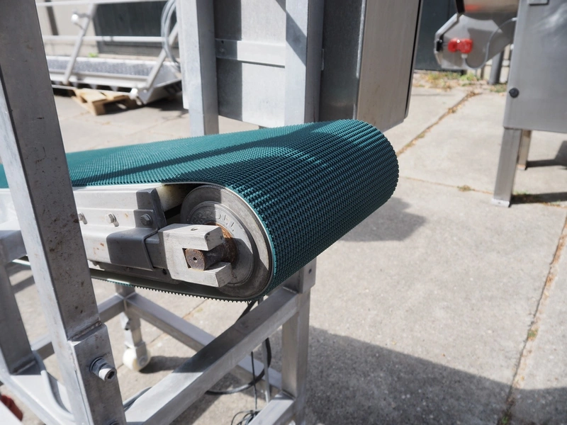 Elevating belt, s/s frame and plastic belt, belt width: 250 mm, elevating height: 800 mm, total dimensions: 1100 mm x 700 mm x 1160 mm.