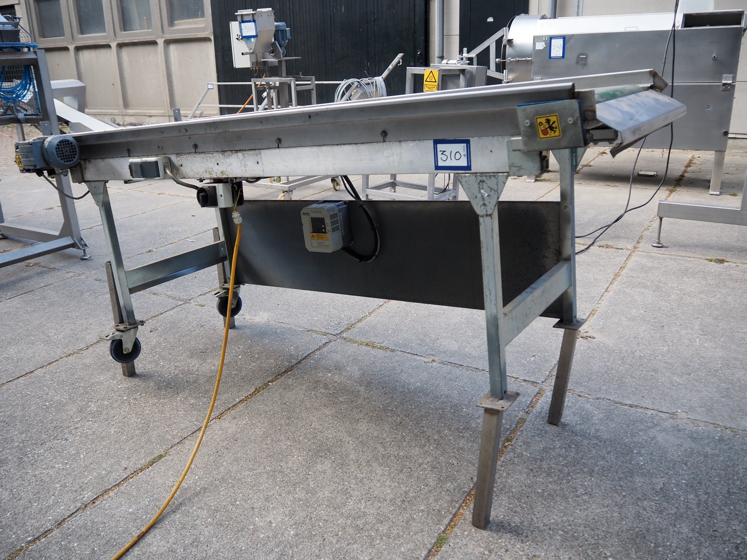 Elevating belt, plastic belt, belt width: 600 mm, elevating height: 1200 mm, total dimensions: 2300 mm x 900 mm x 1240 mm.