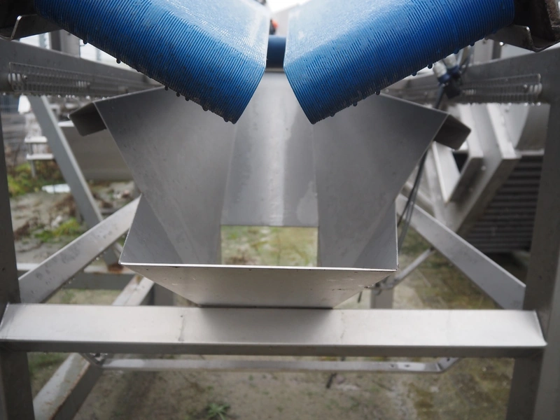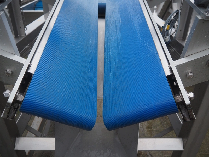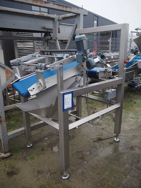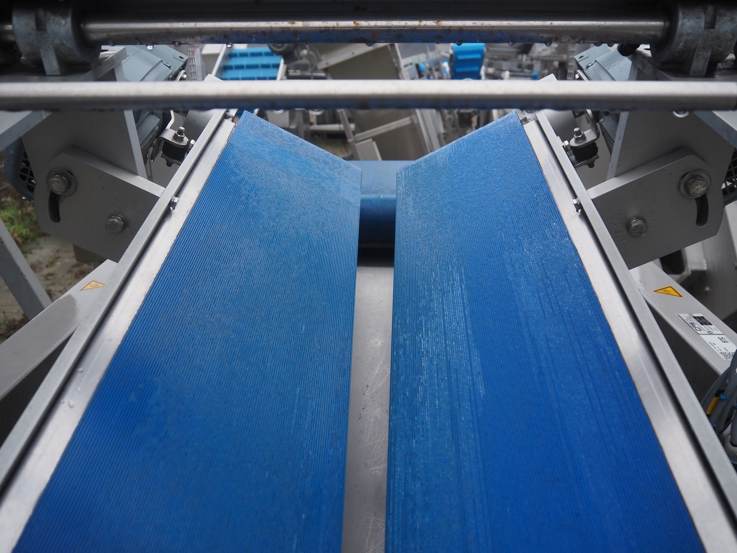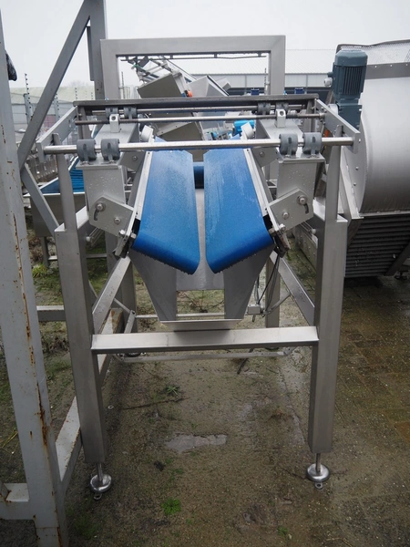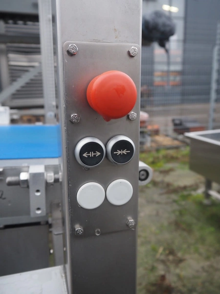 CPS Case Packing Systems buffer belt, number: 42321, year of construction: 06-2016, plastic belt, belt width: (2x) 200 mm and 450 mm, total dimensions: 1550 mm x 980 mm x 1840 mm.