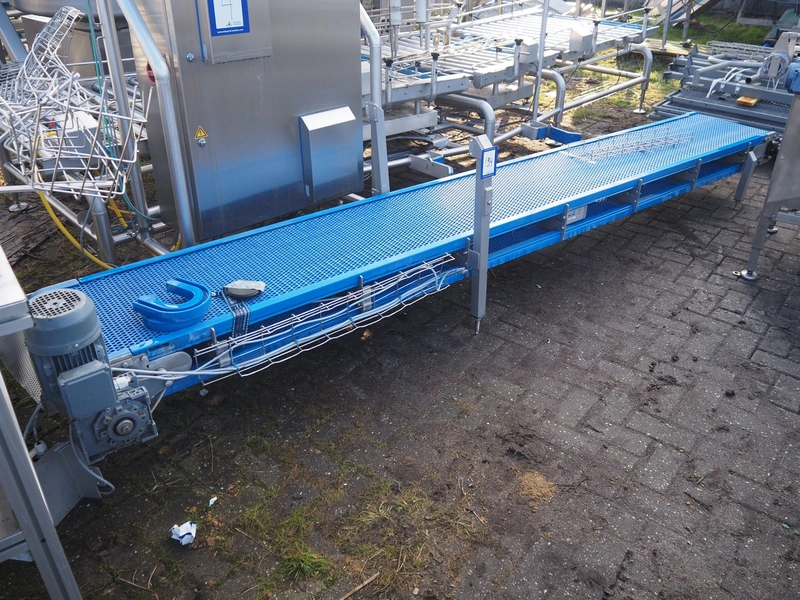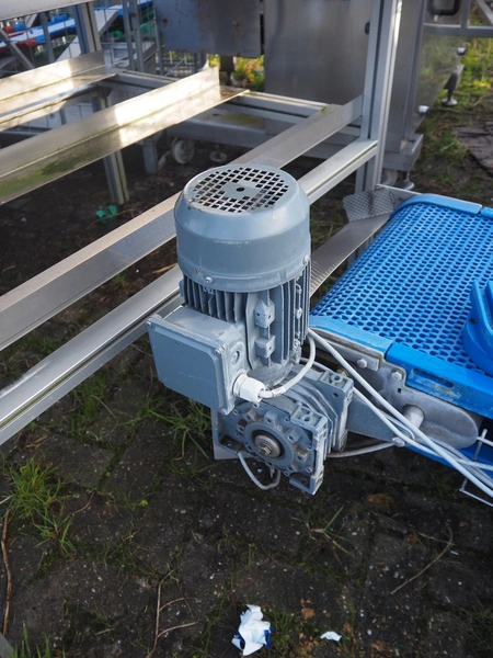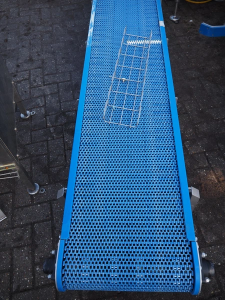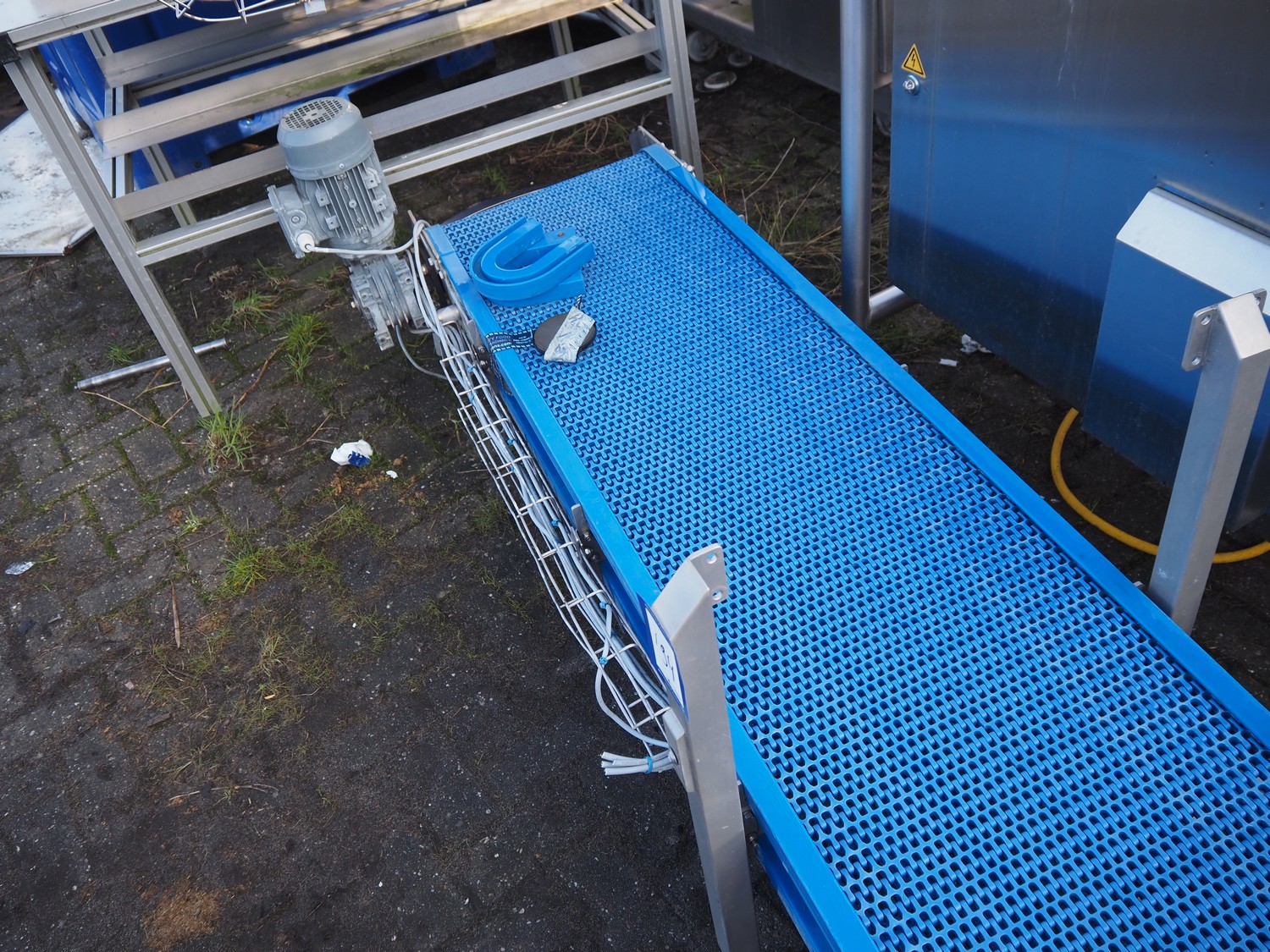Van Rijn transport belt, plastic mesh belt, belt width: 455 mm, total dimensions: 3800 mm x 840 mm x 760 mm.