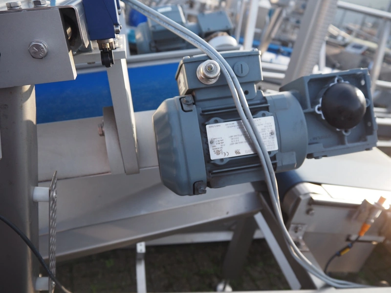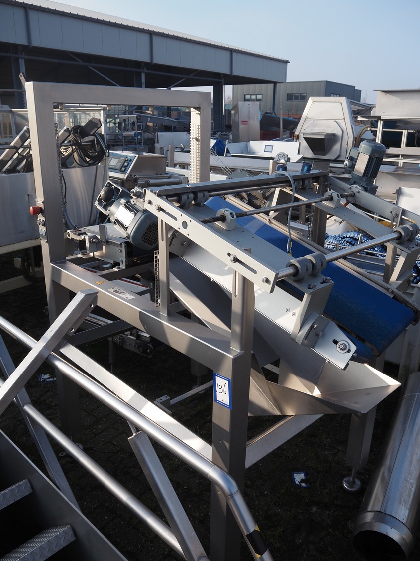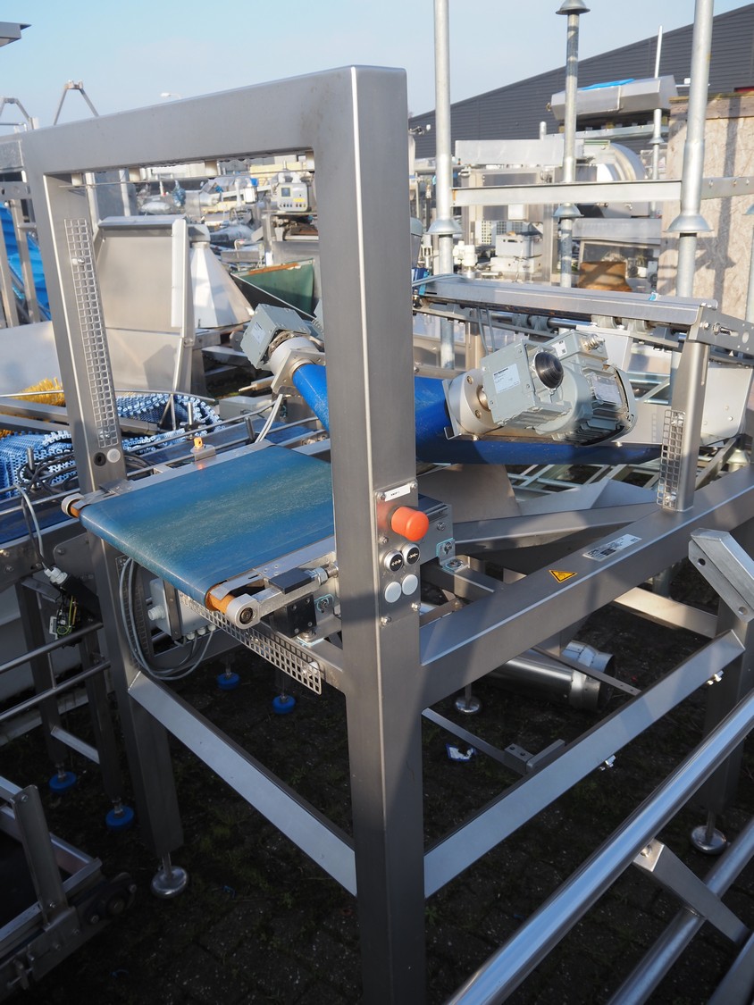 CPS Case Packing Systems buffer belt, number: 42334, year of construction: 06-2016, plastic belt, belt width: (2x) 200 mm and 450 mm, total dimensions: 1550 mm x 980 mm x 1840 mm.