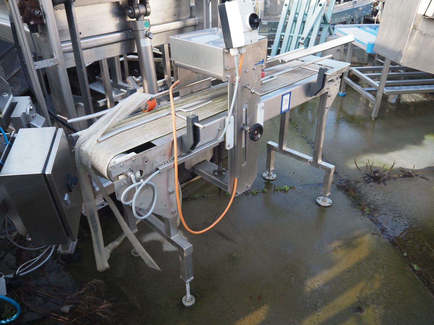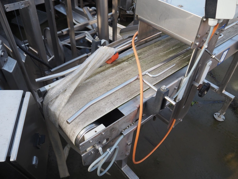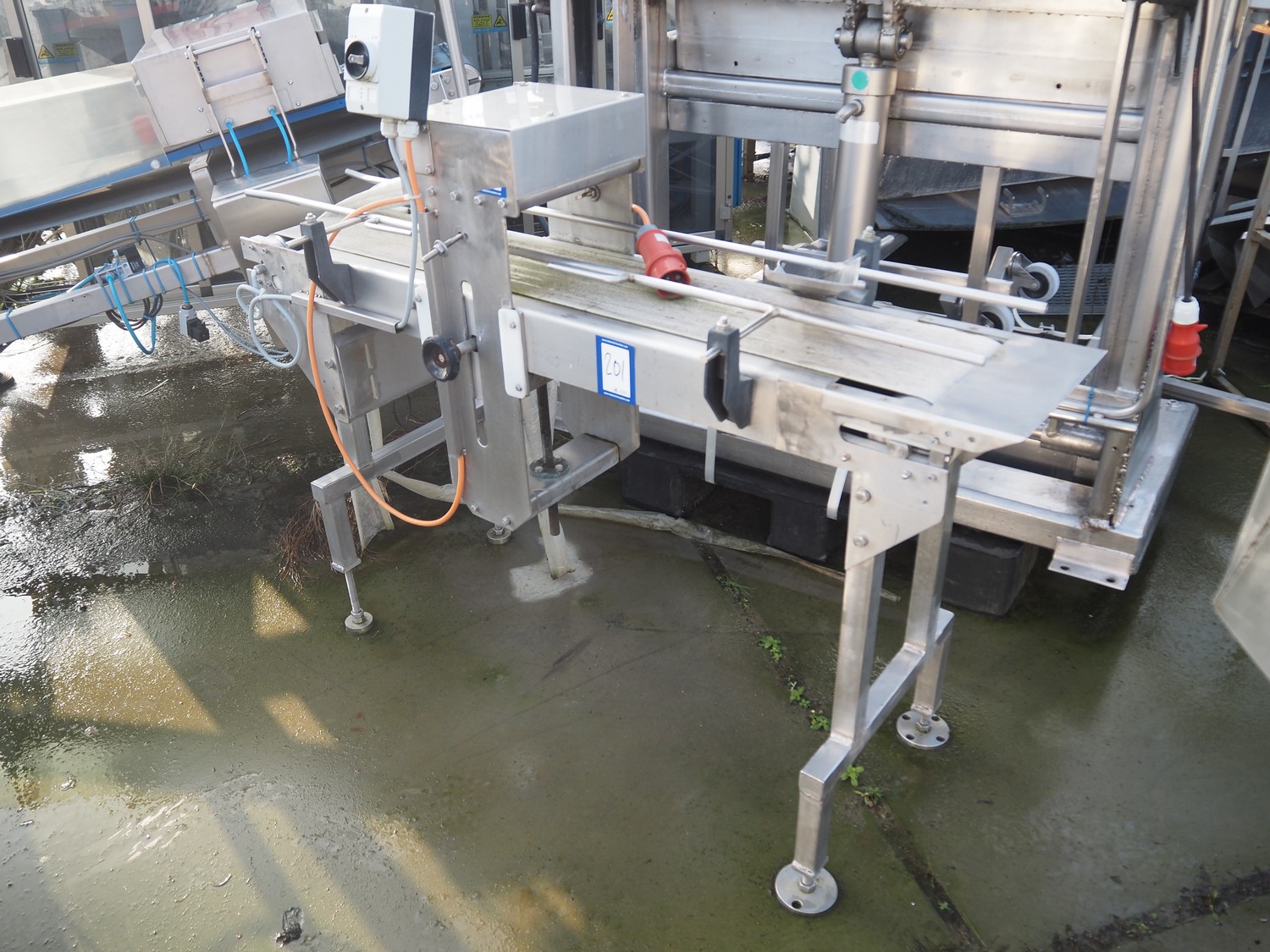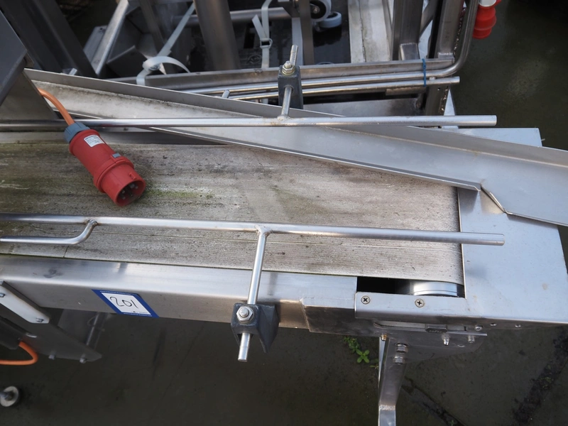 Transport belt, plastic belt, belt width: 230 mm, s/s rollers, roller width: 300 mm, total dimensions: 1600 mm x 550 mm x 1300 mm.