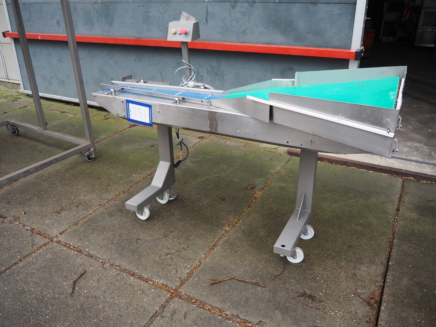 Mobile transport belt with s/s frame, belt width: 200 mm, total dimensions: 2050 mm x 850 mm x 1350 mm.