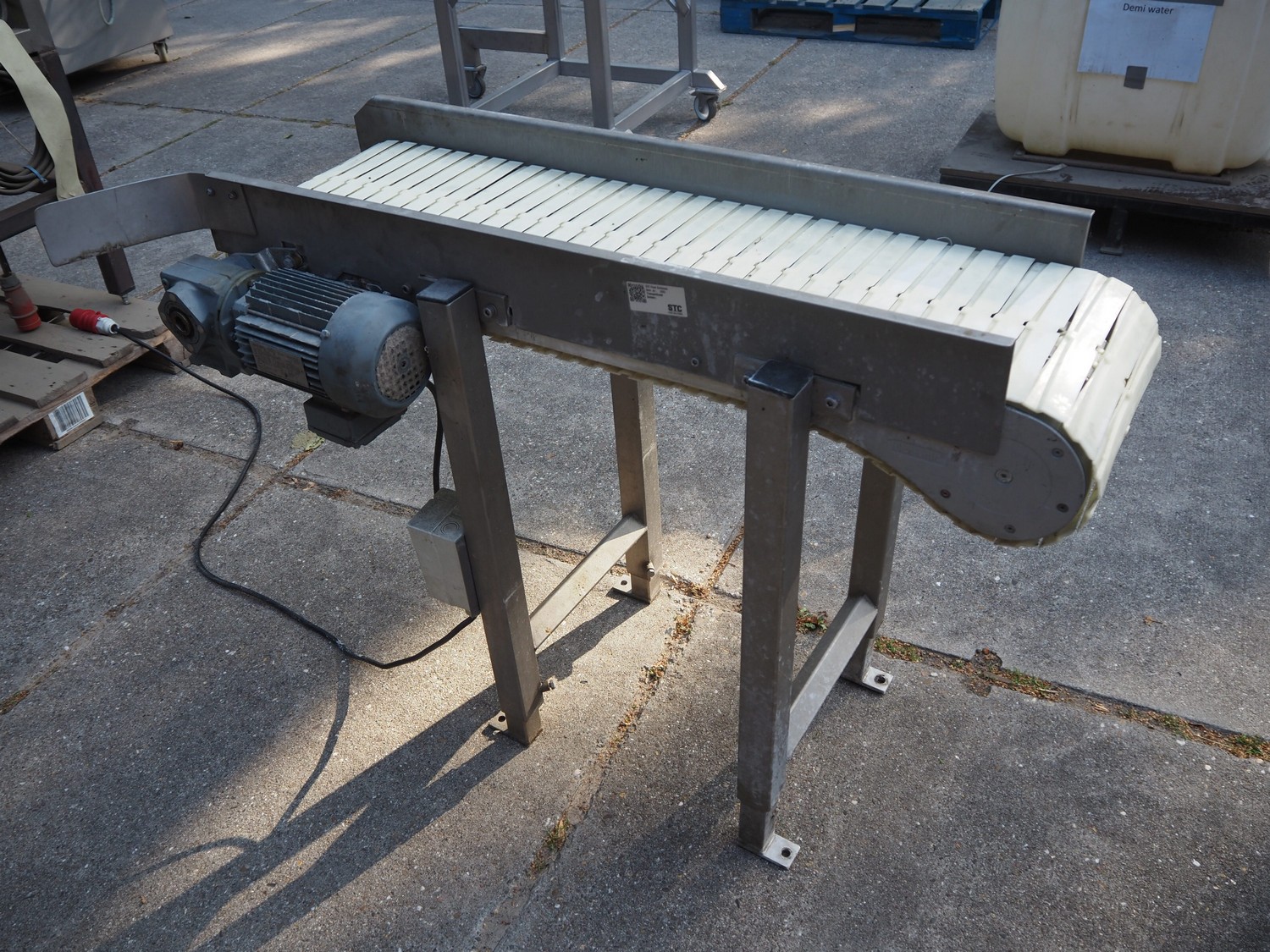 Transport belt, plastic belt, belt width: 295 mm, total dimensions: 1360 mm x 500 mm x 900 mm.