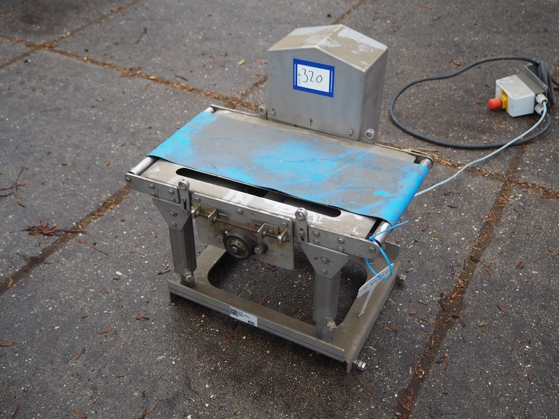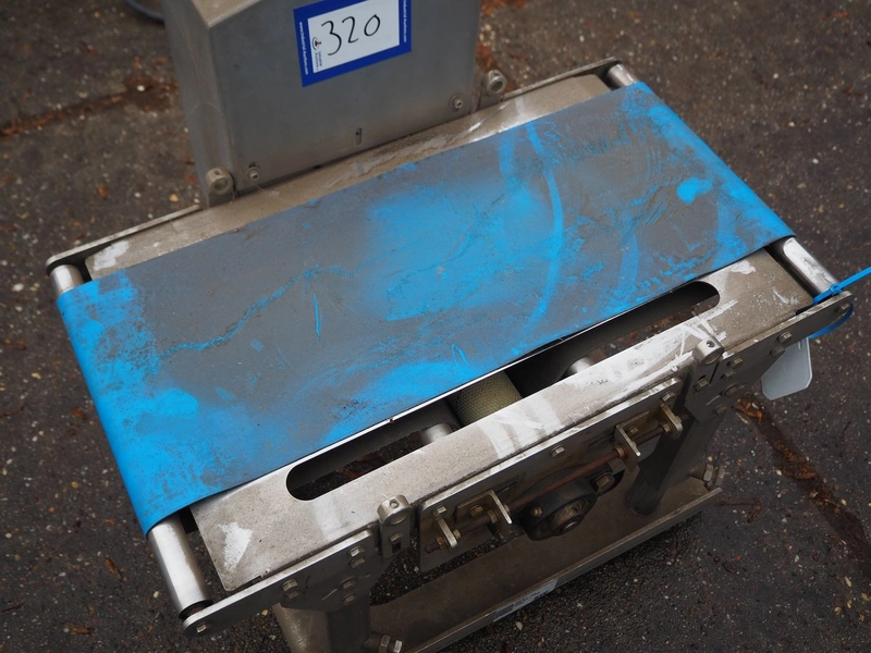 Transport belt with plastic belt, belt width: 220 mm, total dimensions: 600 mm x 510 mm x 570 mm.