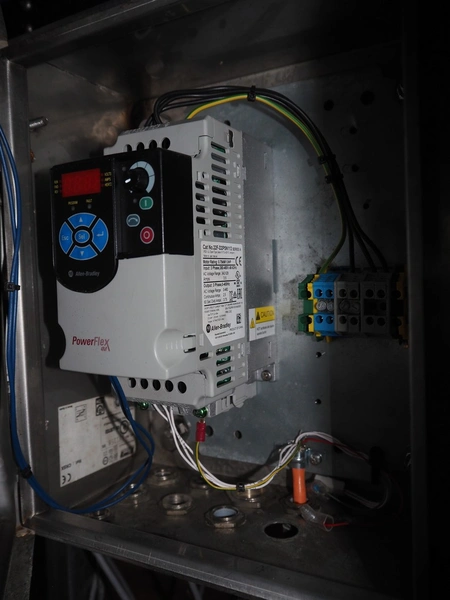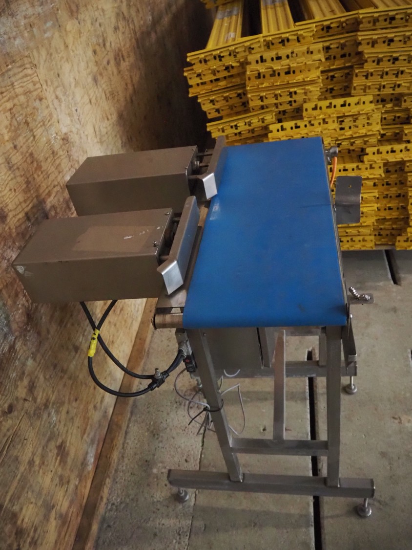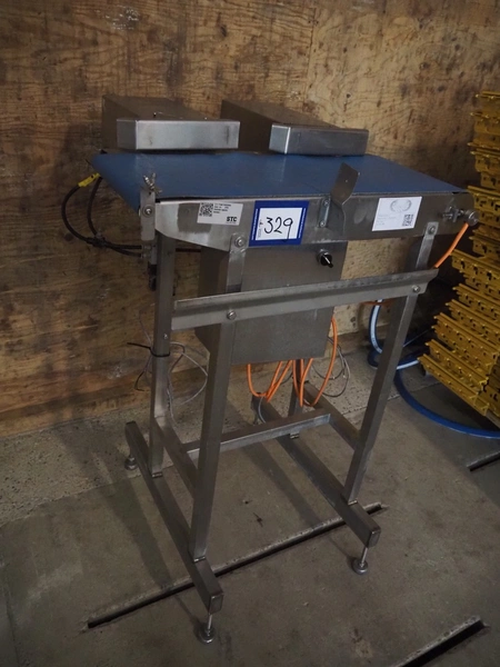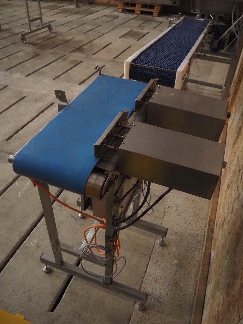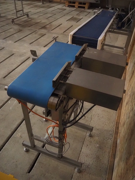 Transport belt with double rejector, plastic belt, belt width: 250 mm, total dimensions: 700 mm x 700 mm x 1050 mm.