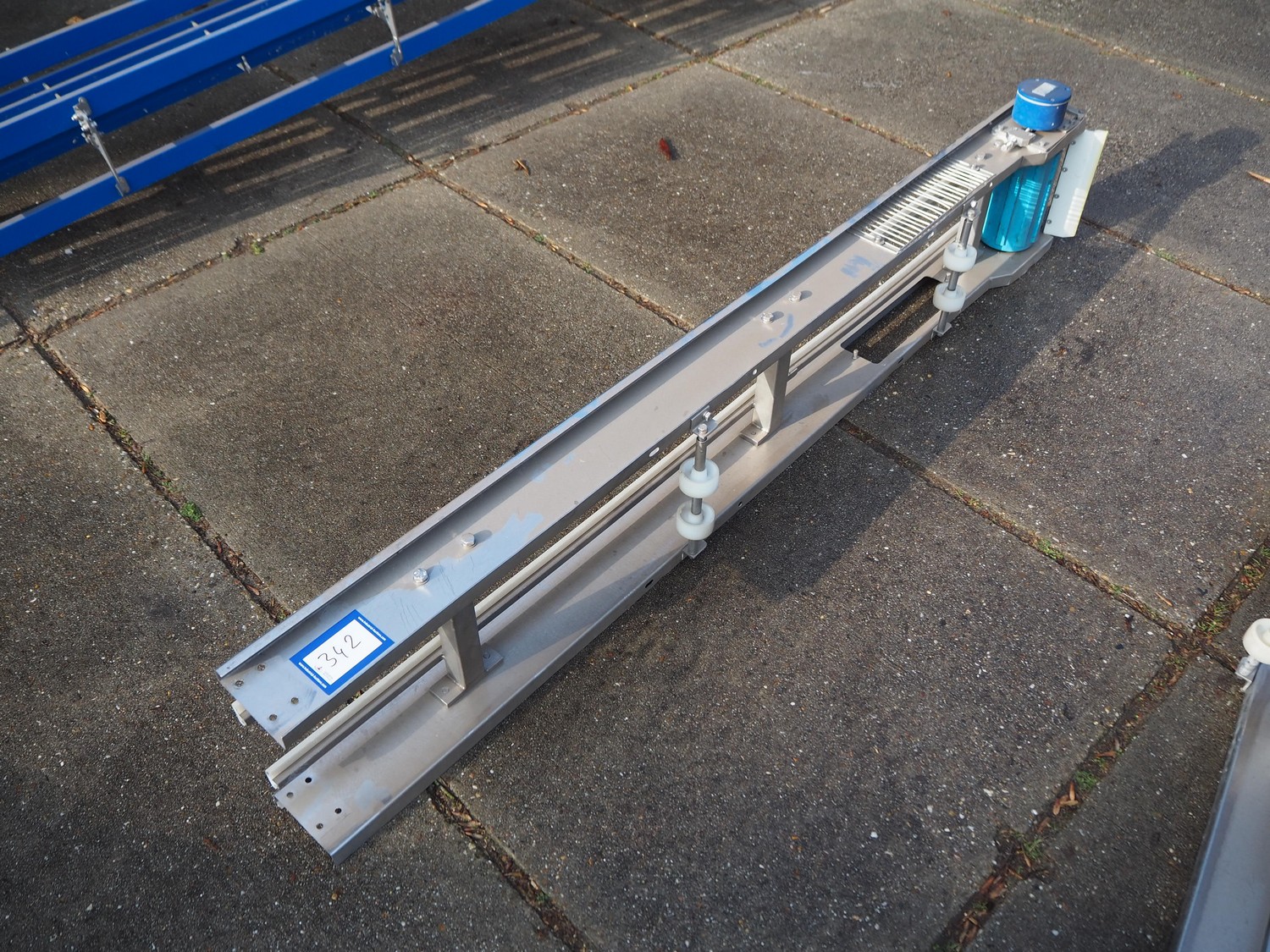 S/s frame for transport belt, belt width: 260 mm, total dimensions: 2030 mm x 400 mm x 200 mm. Incomplete.