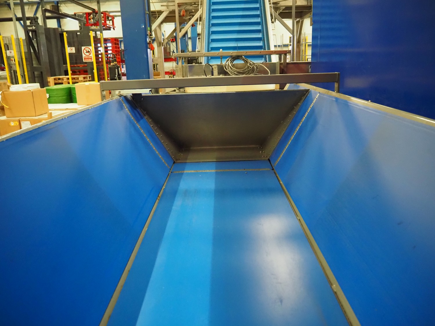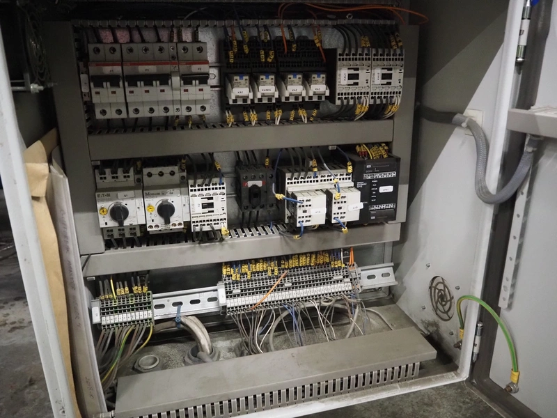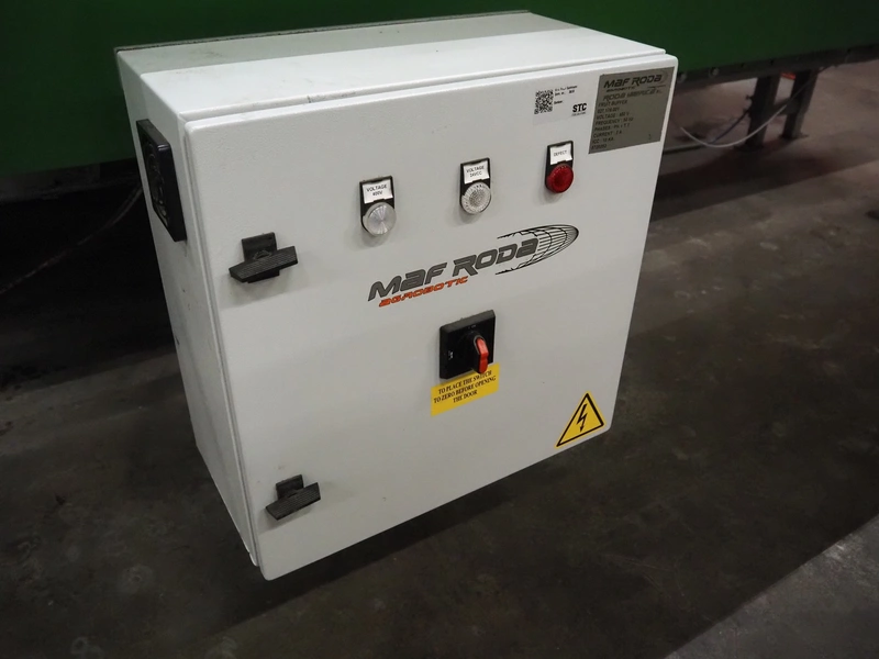 MAF RODA buffer belt, number: 027.178.001, 400 V, 50 Hz, 3 A, 10 KA, plastic belts, belt width: (2x) 495 mm and (2x) 415 mm, total dimensions: 3950 mm x 1350 mm x 1150 mm.