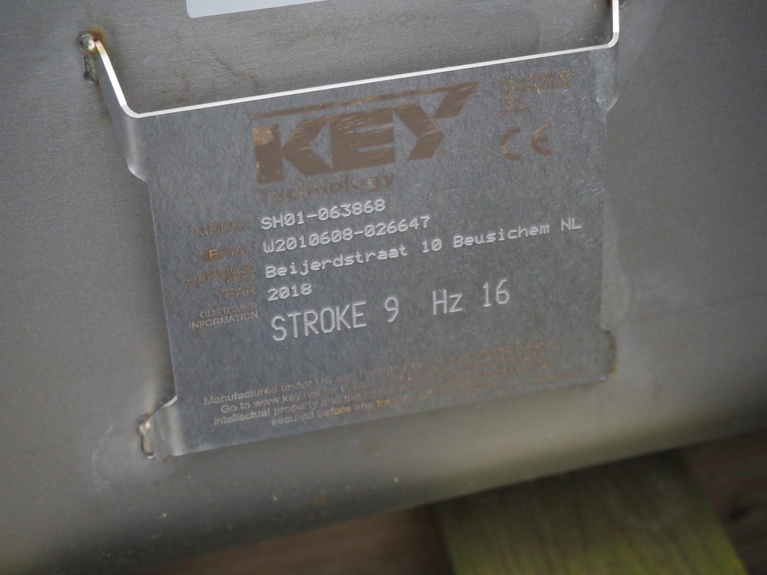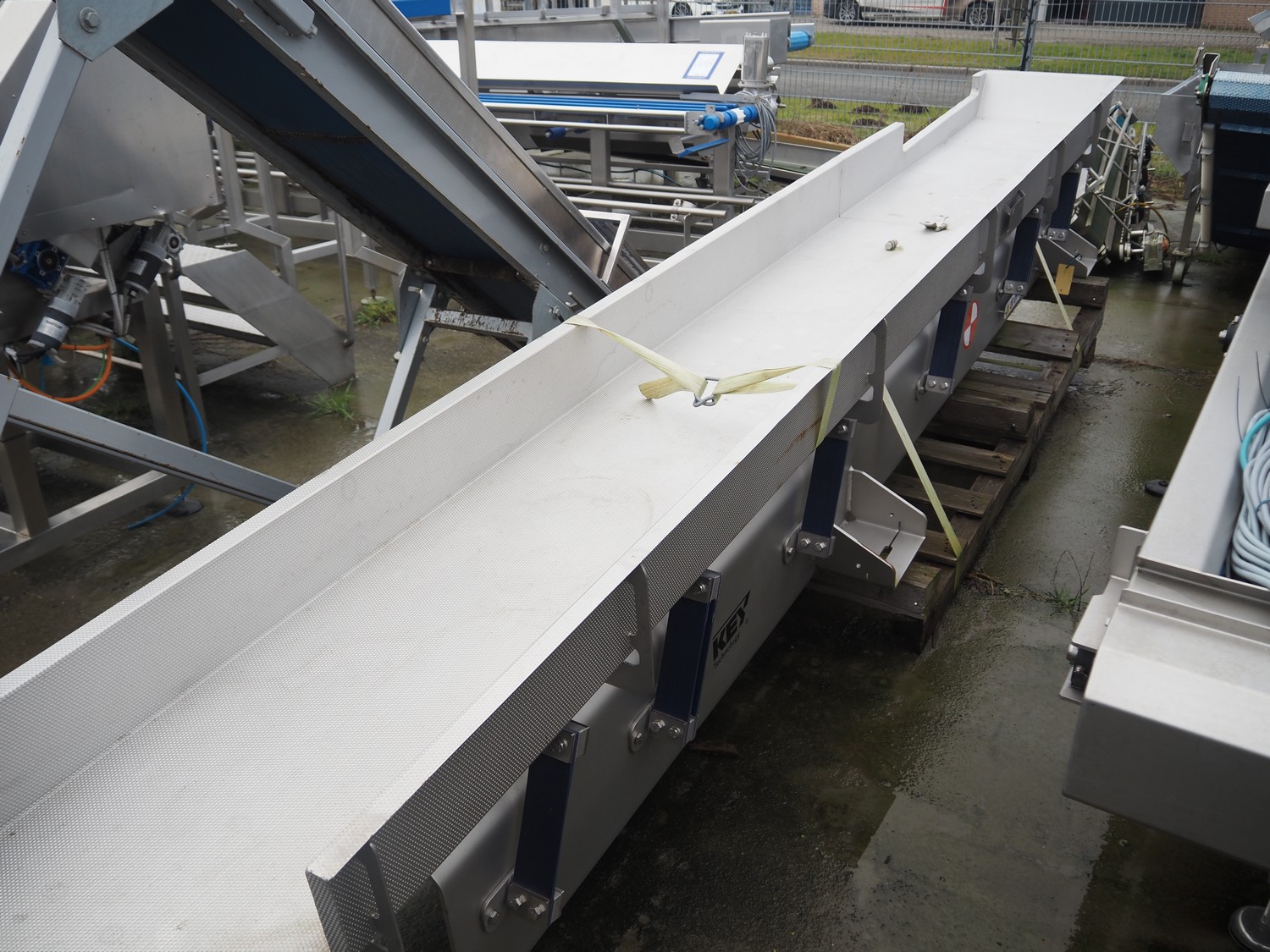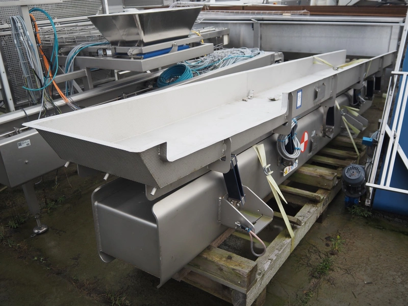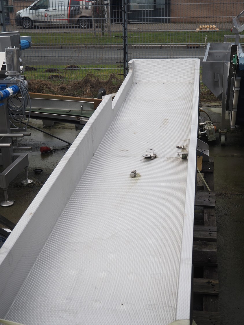Key Technology vibrating gutter, model: SH01-063868, serial number: W2010608-026647, year of construction: 2018, gutter width: 500 mm, total dimensions: 4600 mm x 740 mm x 650 mm. Without motor.