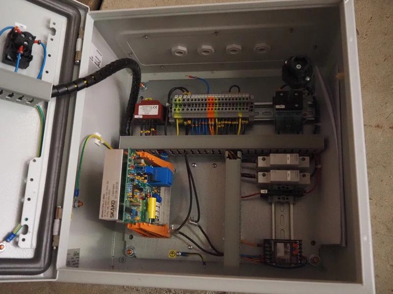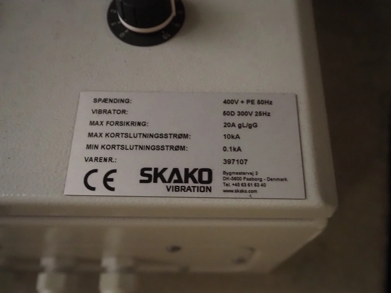 SKAKO Vibration vibrating gutter, type: 50D, number: 397107, 400 V, 50 Hz, 10 kA, gutter width: 400 mm, total dimensions: 2900 mm x 1100 mm x 1200 mm.
