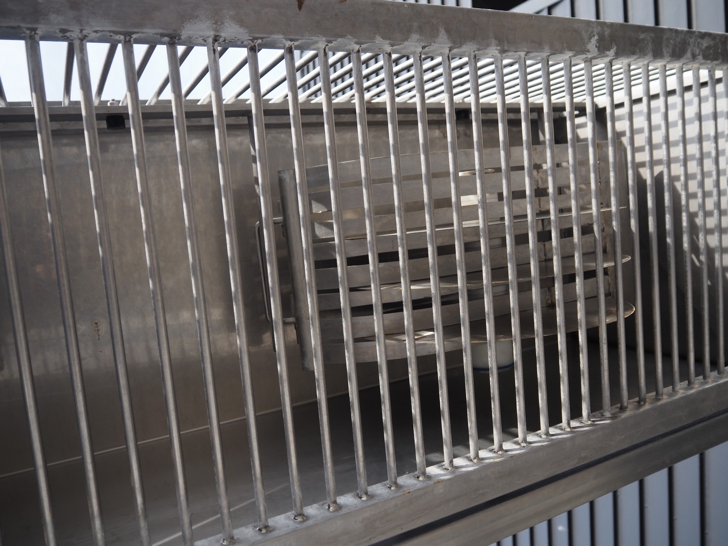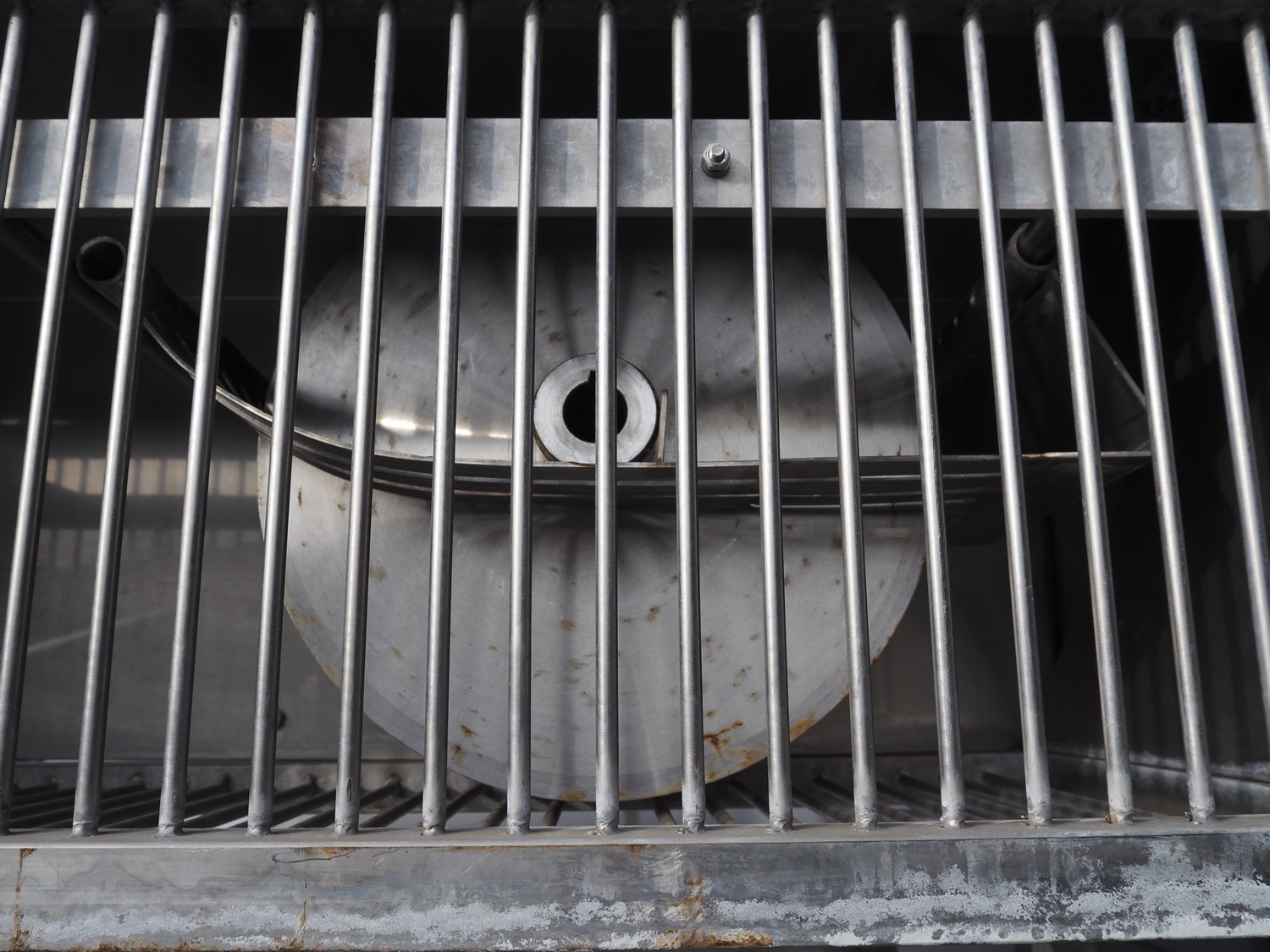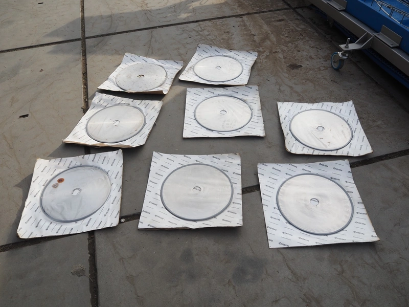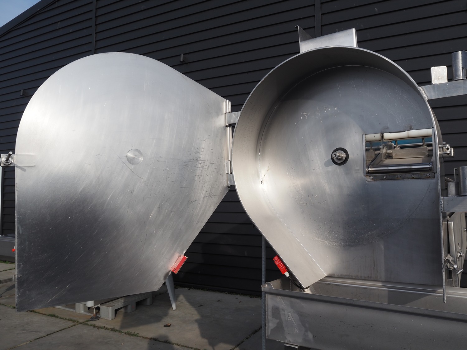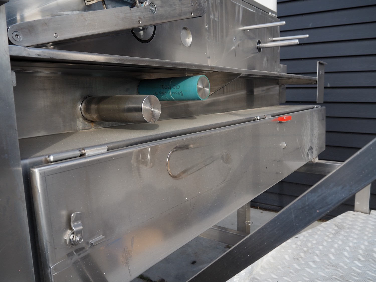 Eillert B.V. slicer, type: G 4400 VS, 230 V, 1 Ph, 10.9 A, plastic belt, belt width: 250 mm, diameter knife: 365 mm, total dimensions: 2900 mm x 2000 mm x 2380 mm. Incomplete.