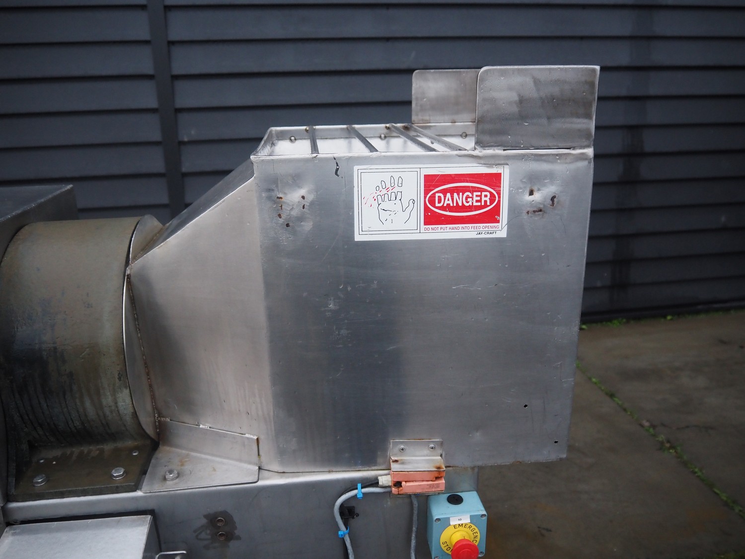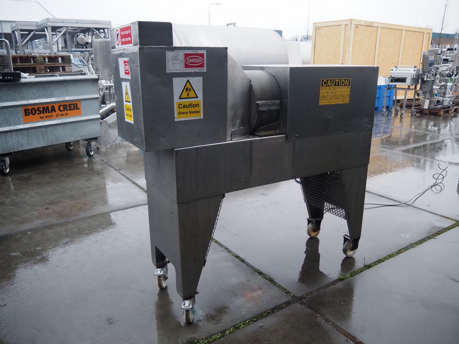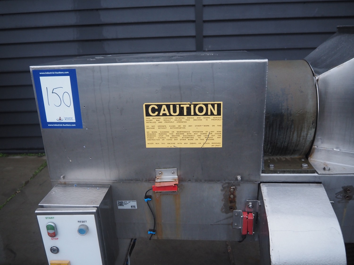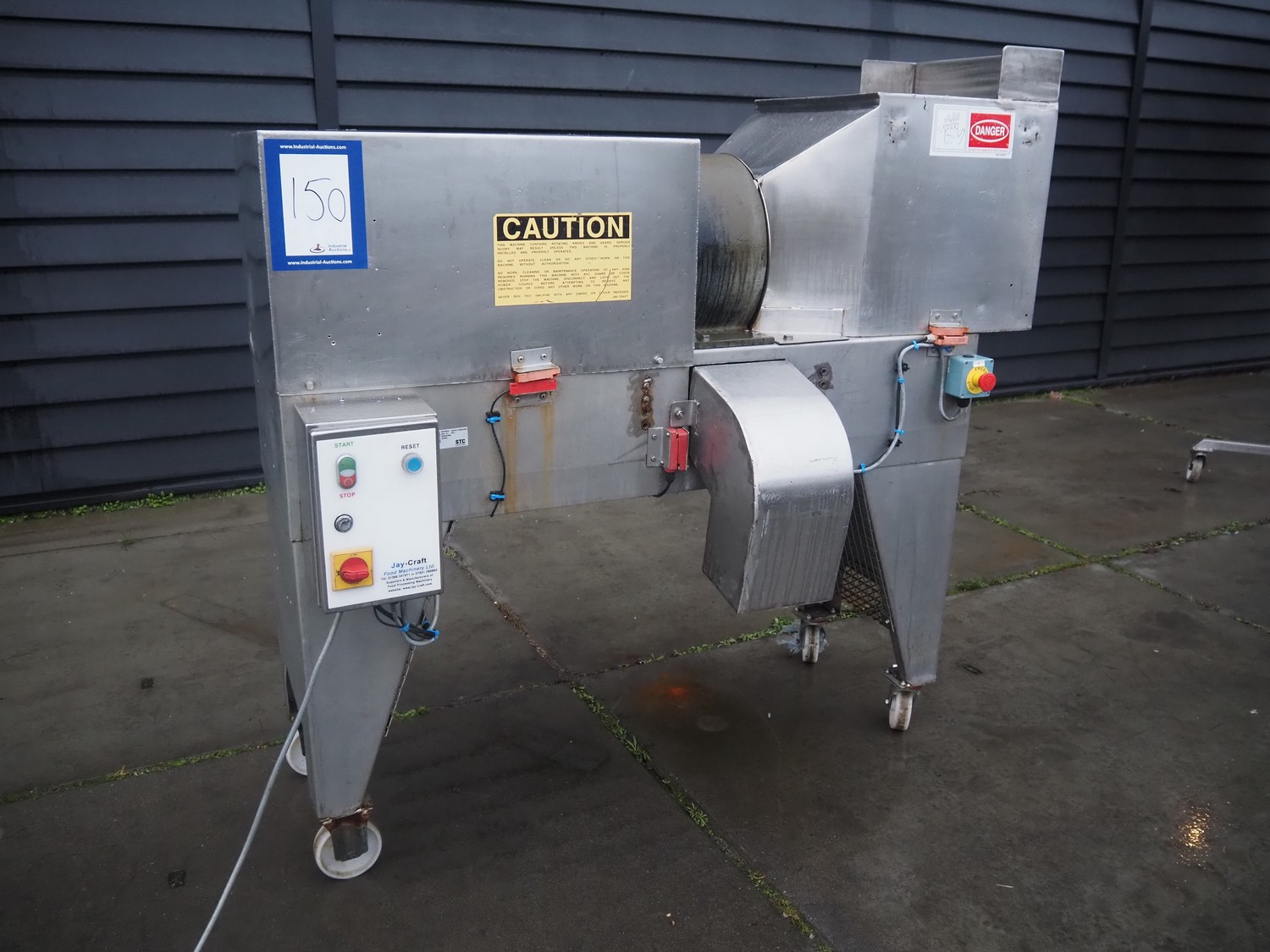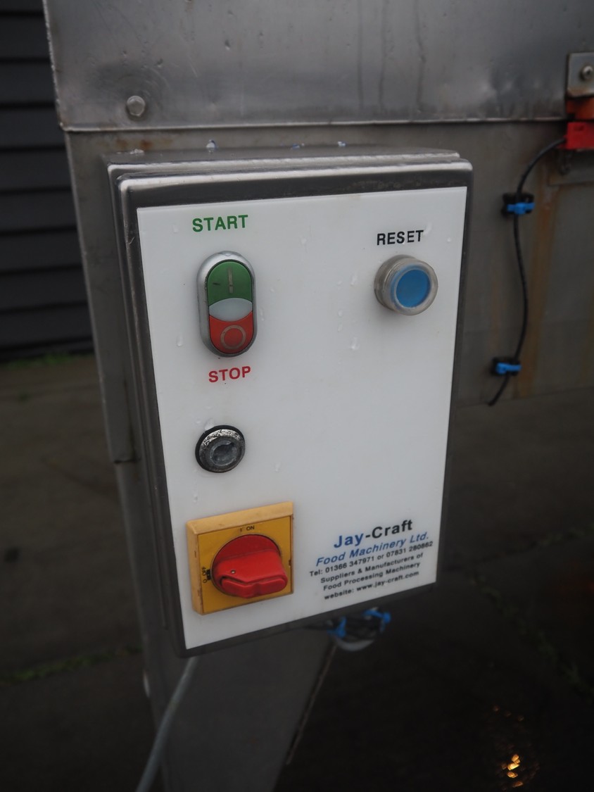 Jay-Craft Food Machinery mobile slicer, plate diameter: 180 mm, working width: 140 mm, total dimensions: 1550 mm x 750 mm x 1550 mm.