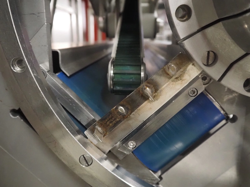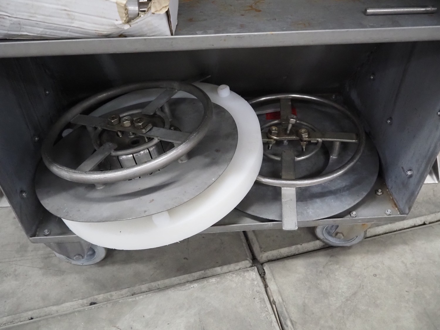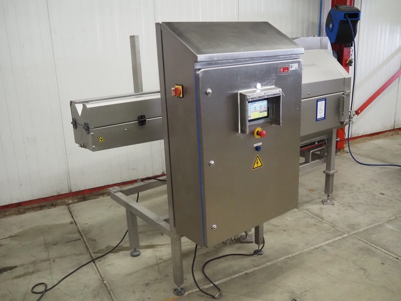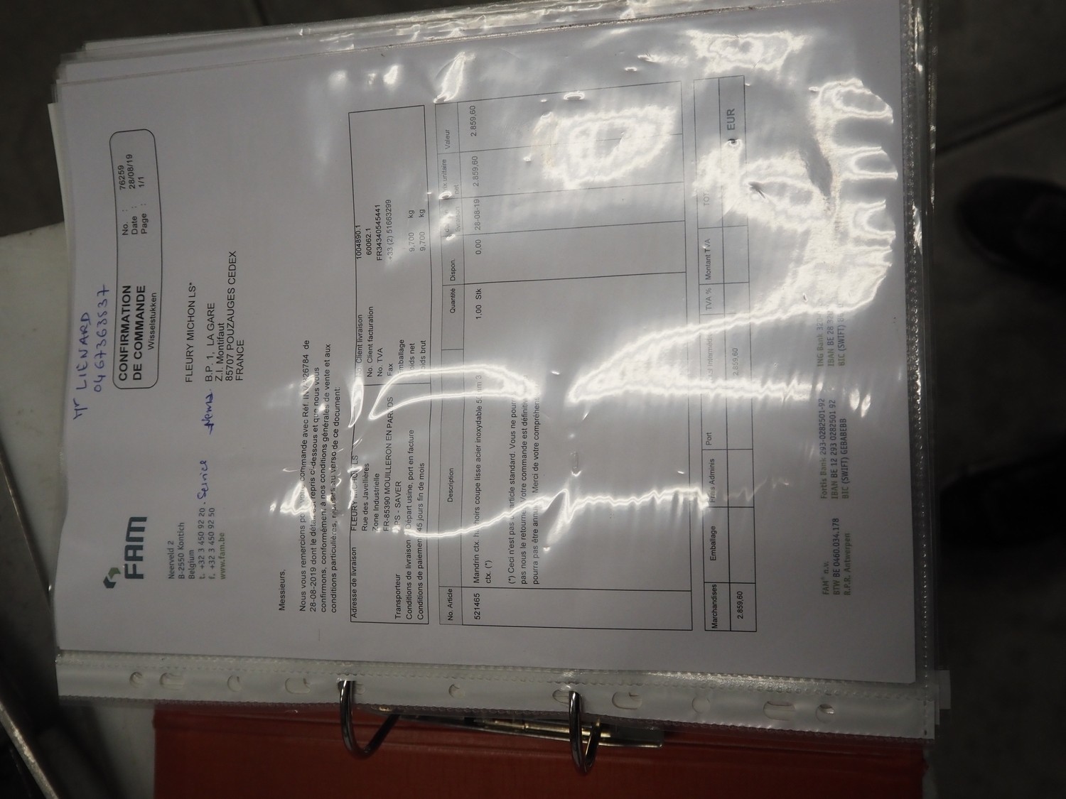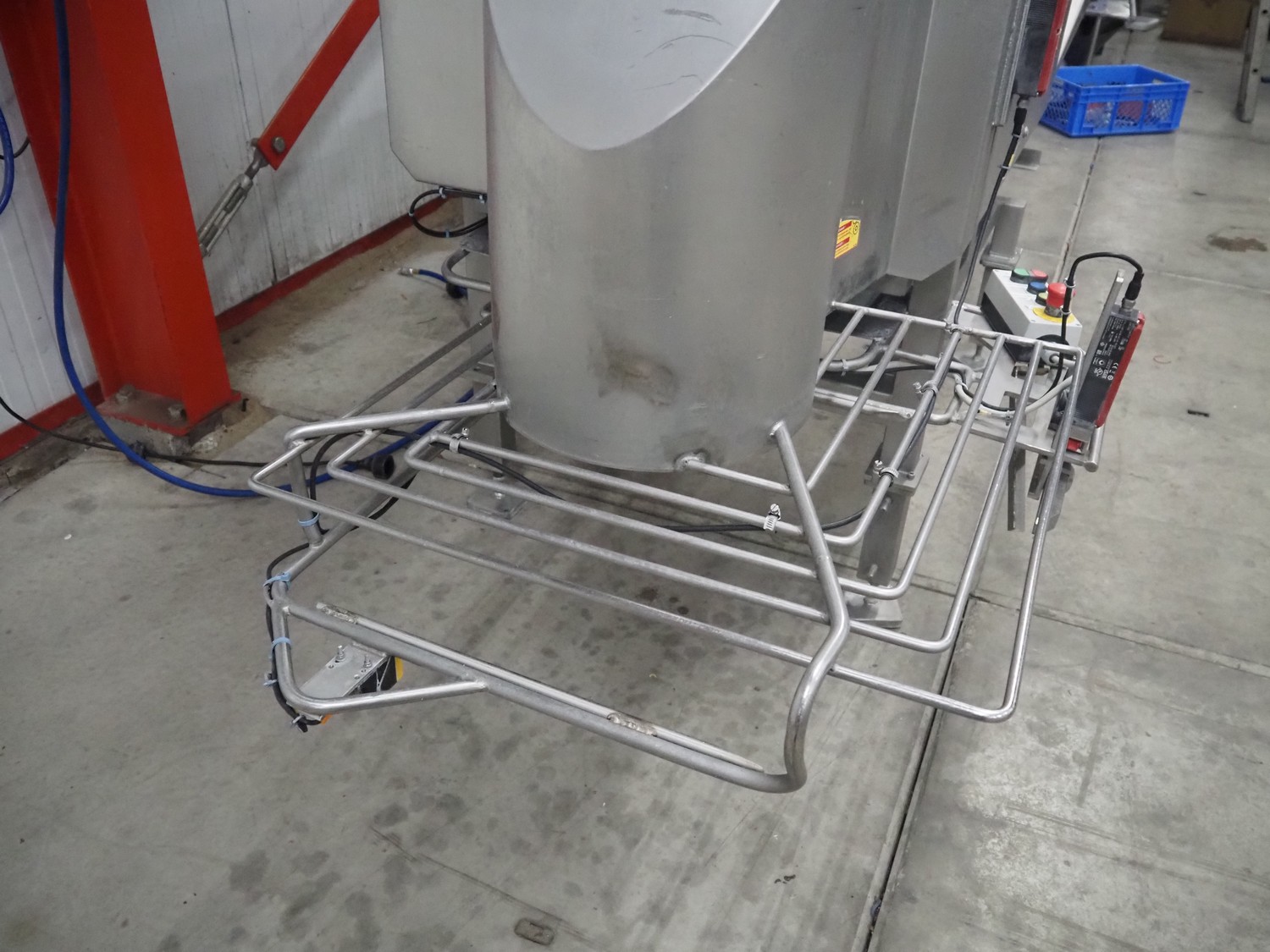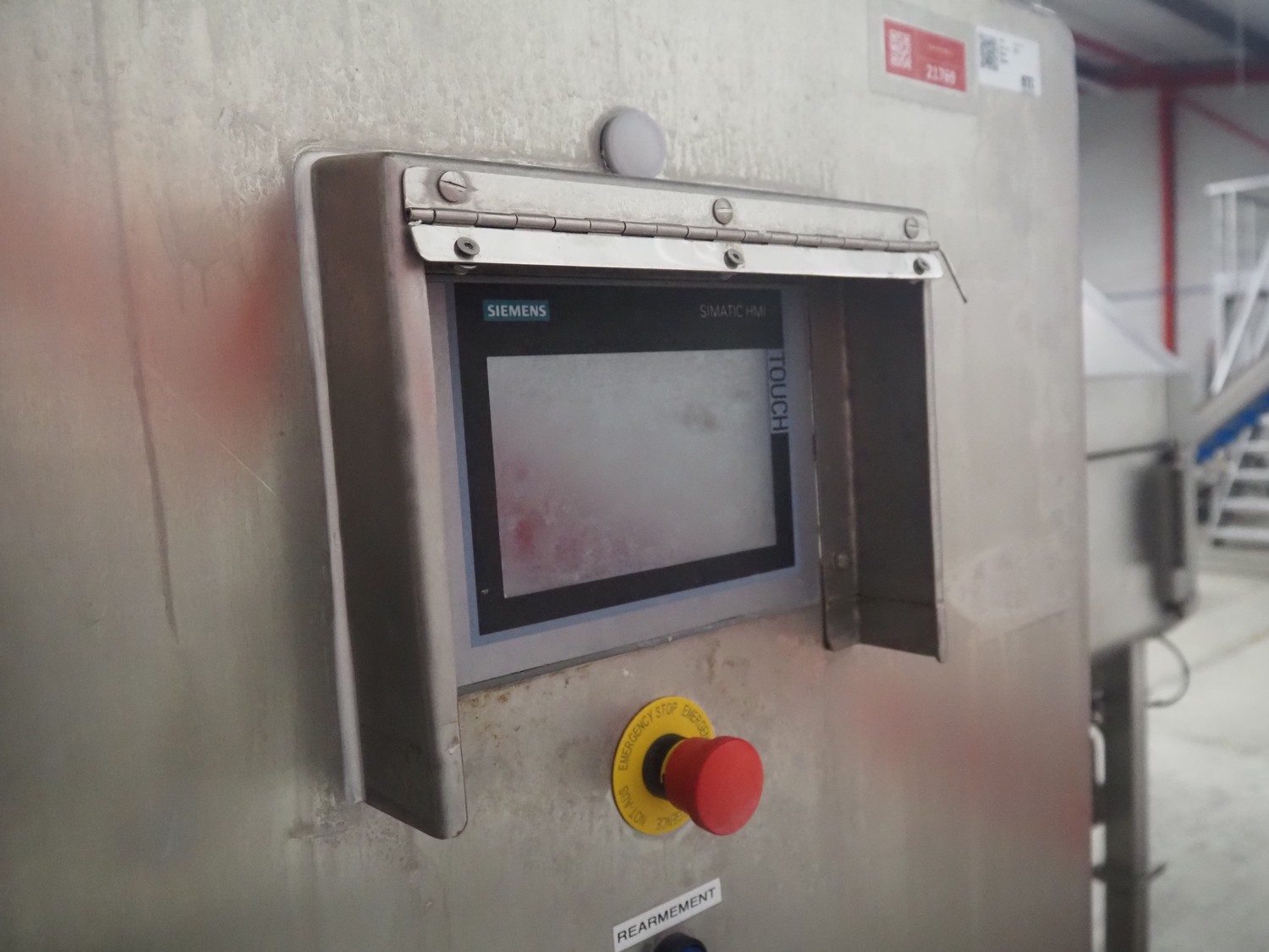 FAM mobile slicer, type: Mantis, number: 7821, year of construction: 2012, 400 V, 3 Ph, 50 Hz, 17 A, 4 kW, weight: 725 kg, plastic V-belt, belt width: (2x) 100 mm, total dimensions: 3200 mm x 1450 mm x 1700 mm.