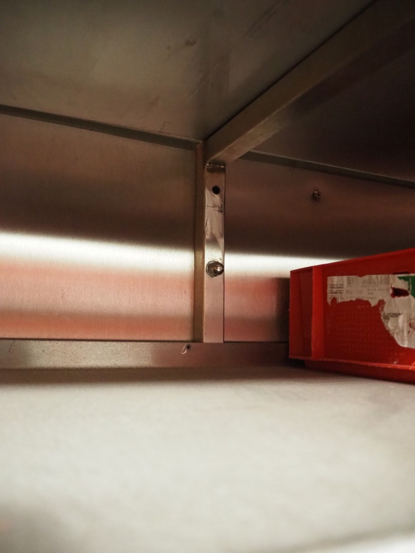 S/s wall mounted rack for E2-crates, 3 floors, dimensions: 2000 mm x 500 mm x 650 mm. Without content.