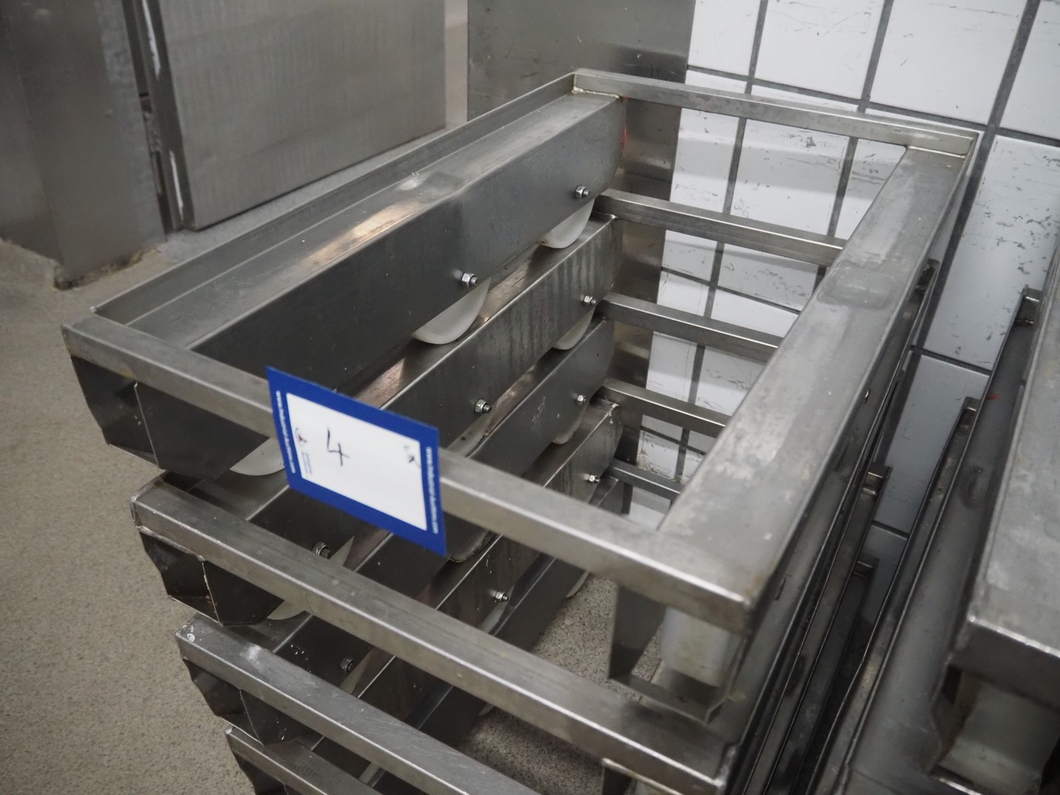 5 s/s rollies for E2 crates, dimensions: (5x) 660 mm x 410 mm x 180 mm.