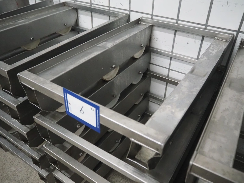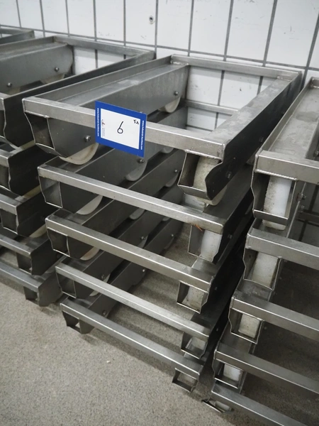 5 s/s rollies for E2 crates, dimensions: (5x) 660 mm x 410 mm x 180 mm.