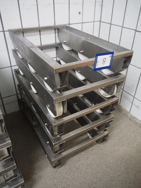 5 s/s rollies for E2 crates, dimensions: (5x) 660 mm x 410 mm x 180 mm.