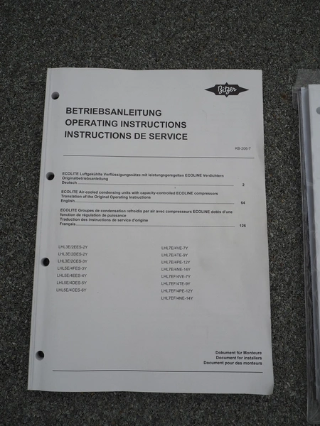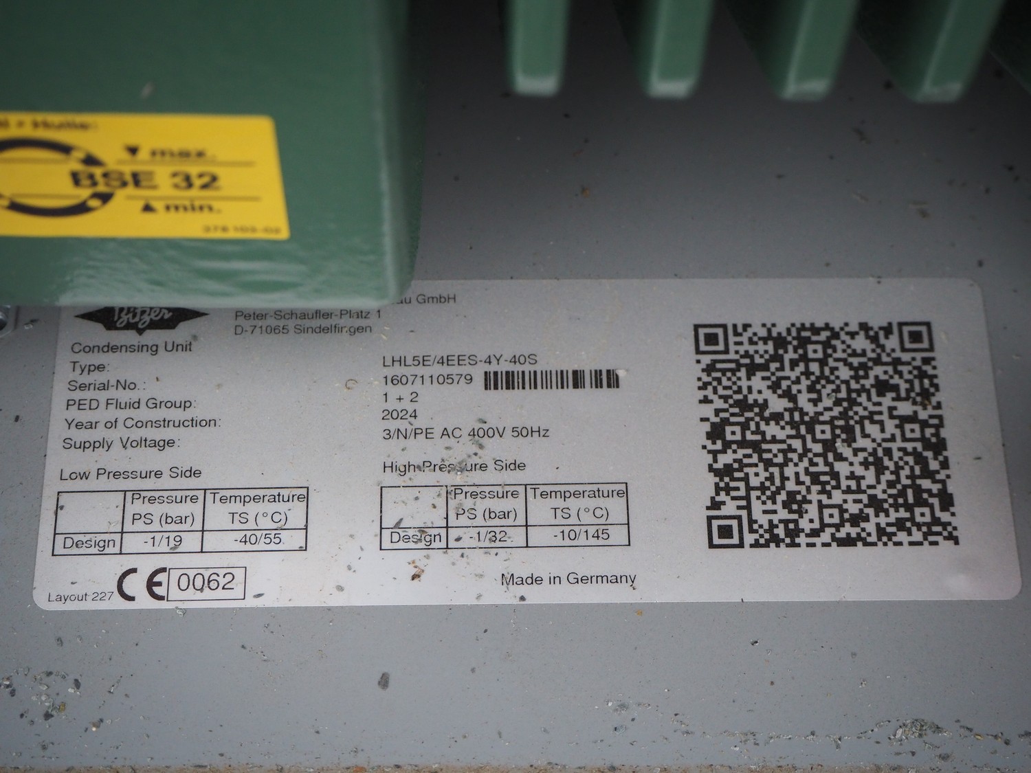 Bitzer Kühlmaschinenbau GmbH compressor / condensing unit, type condensing unit: LHL5E, serial number: 1607110579, year of construction: 2024, type compressor: 4EES-4Y-40S, serial number: 1607107124, capacity: 22.7 / 27.4 m³ per hour, total dimensions: 1200 mm x 500 mm x 1200 mm.