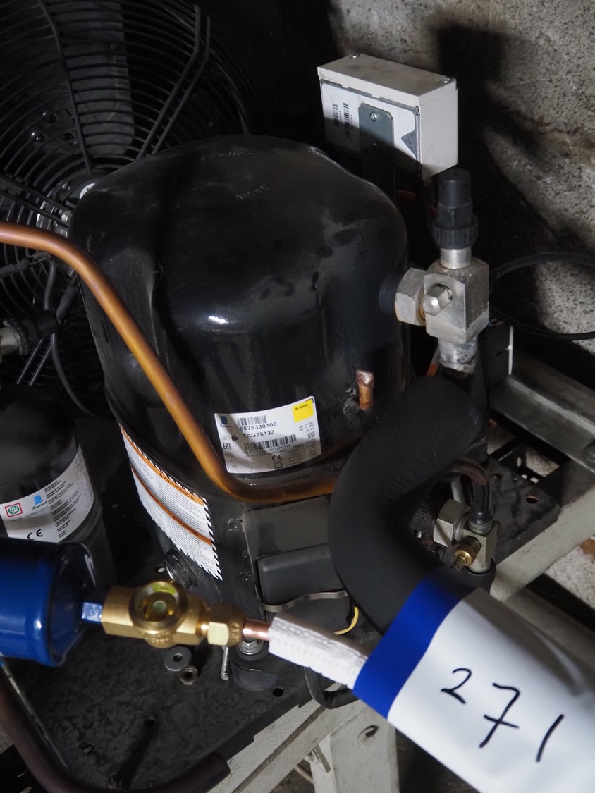Tecumseh compressor / condensing unit, model: TAG2513Z, 400/440 V, 3 Ph, 50/60 Hz, refrigerant: R-134a, dimensions: 600 mm x 700 mm x 700 mm.