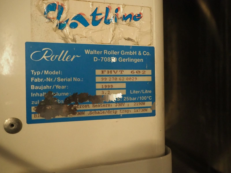 Walter Roller GmbH & Co. evaporator, type/model: FHVT 602, serial number: 99 270 62 0029, year of construction: 1999, 230 V, volume: 3.2 liter, 1 x 730 W, 2 fans, dimensions: 1200 mm x 400 mm x 450 mm.