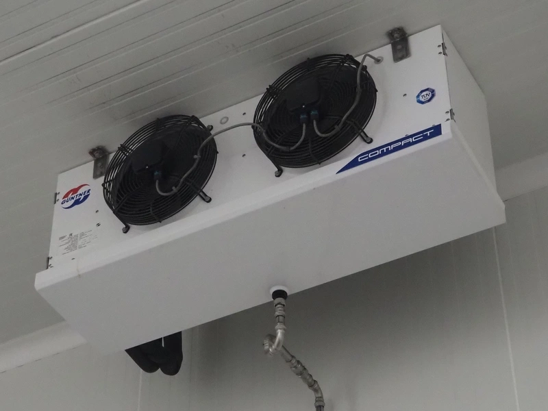 Güntner evaporator, year of construction: 2018, volume: 7.81 liter, design pressure: 32 bar, 2 fans, dimensions: 1220 mm x 500 mm x 450 mm.