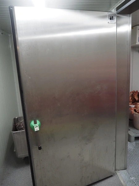 S/s refrigerated door, thickness: 100 mm, dimensions door: 1180 mm x 2200 mm.