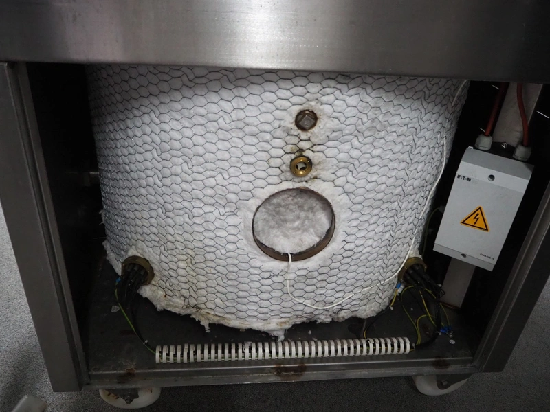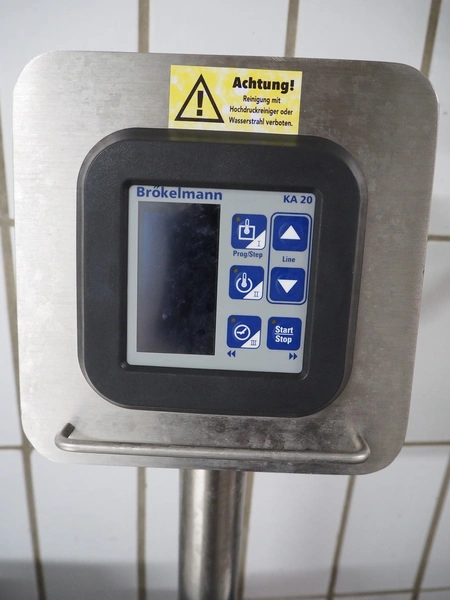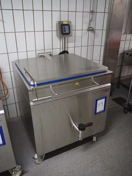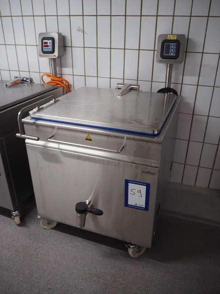 Brӧkelmann mobile cooking vessel, volume: 200 liter, inside diameter: 690 mm, inside height: 540 mm, Brӧkelmann KA20 control panel, total dimensions: 850 mm x 1000 mm x 1400 mm.