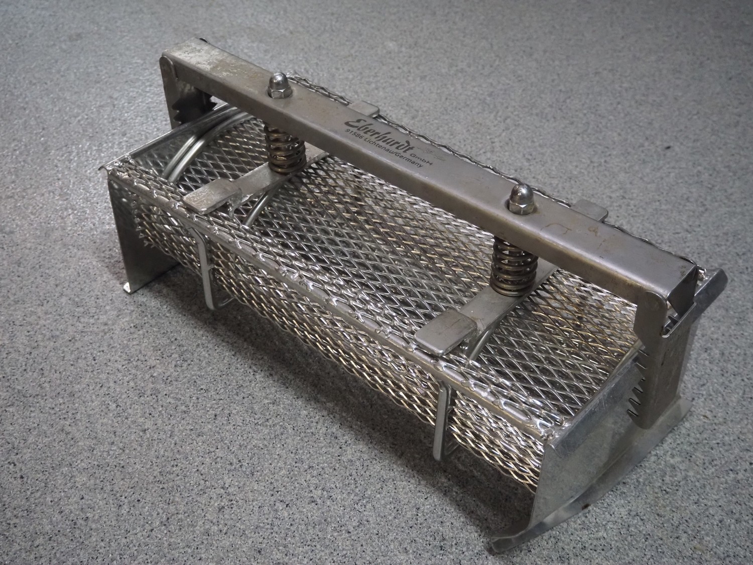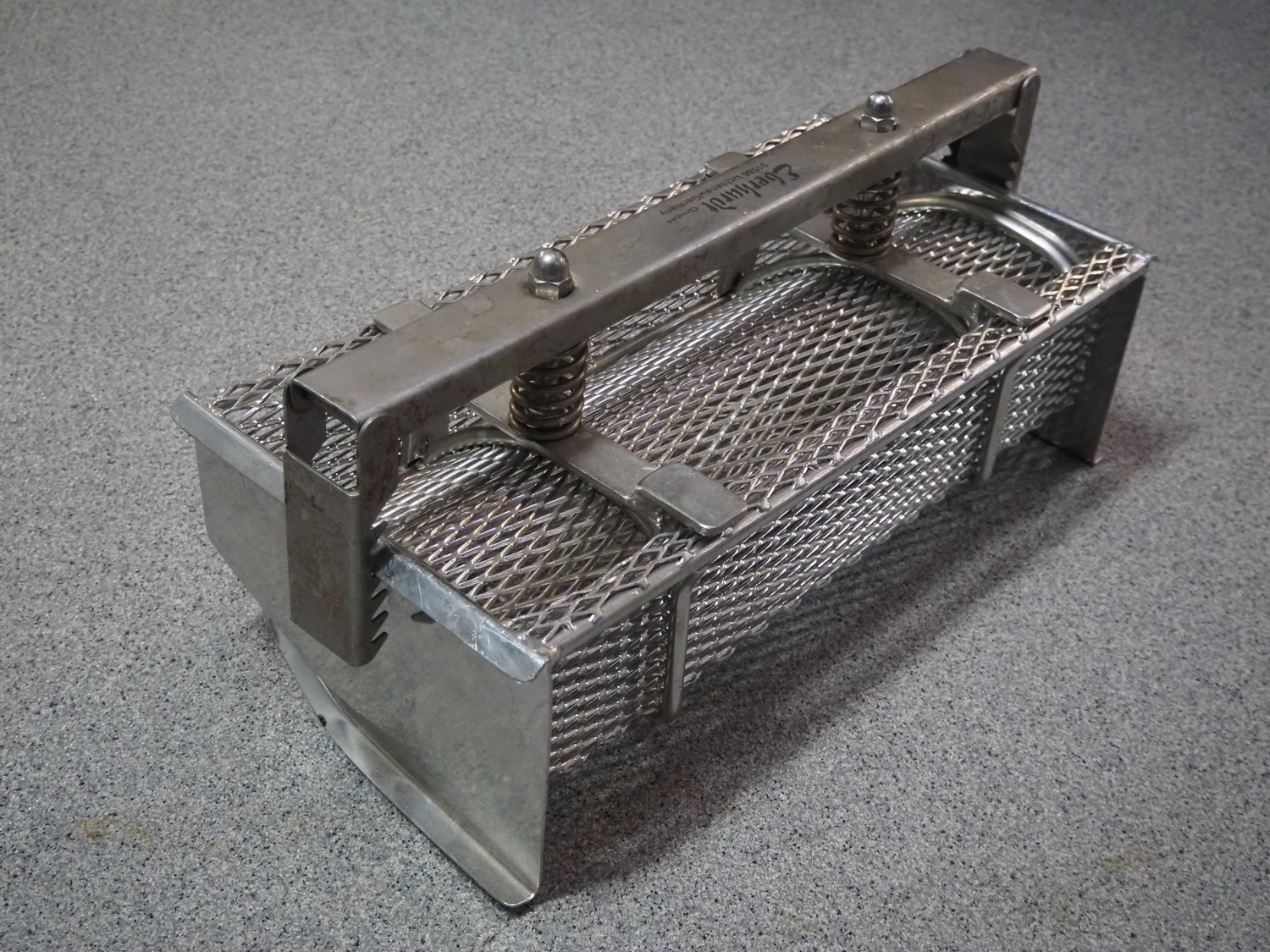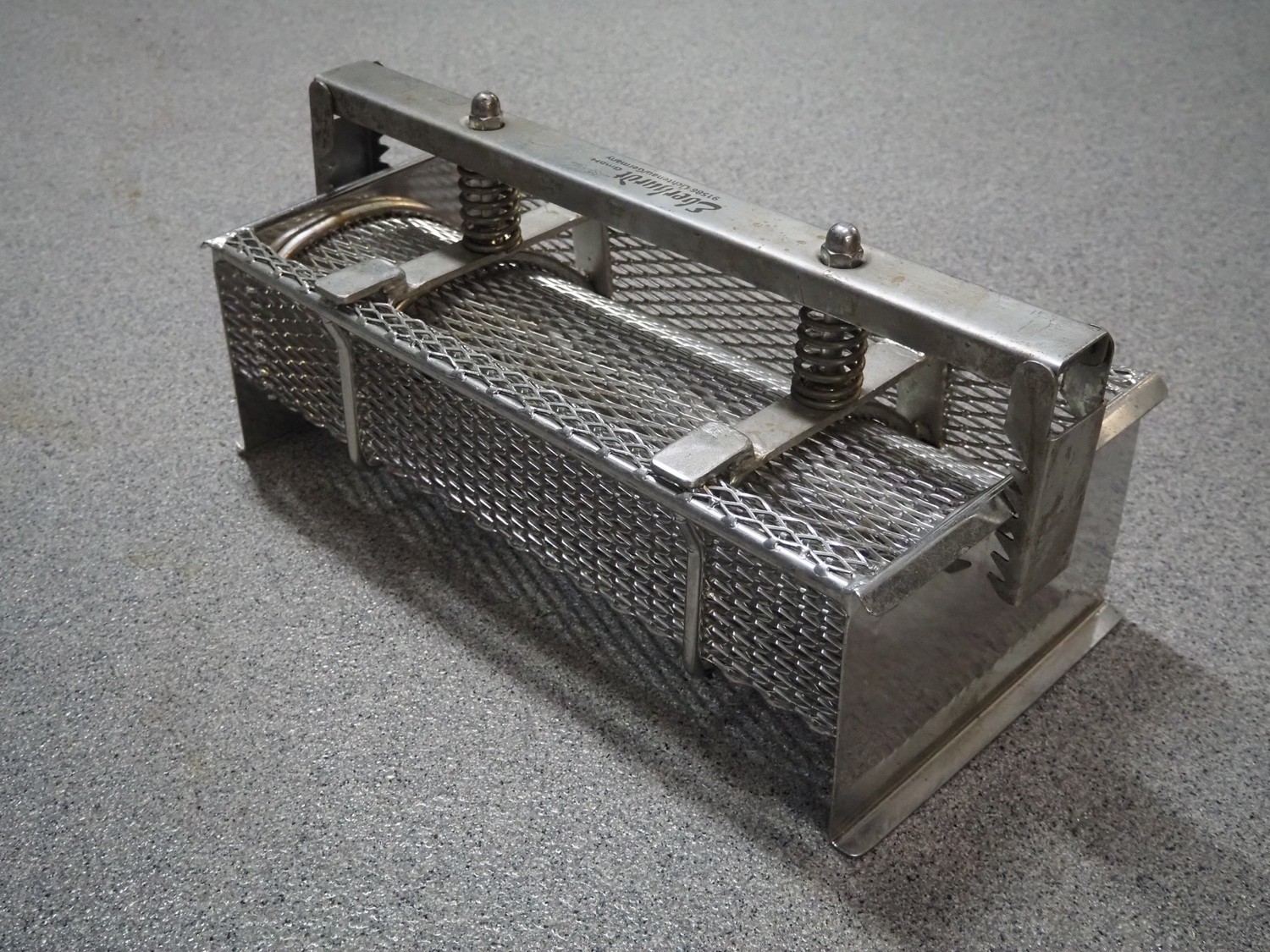 Plastic pallet box with 9 Eberhardt s/s ham moulds, each ham mould: (9x) 530 mm x 220 mm x 180 mm, total dimensions: 1200 mm x 800 mm x 800 mm.