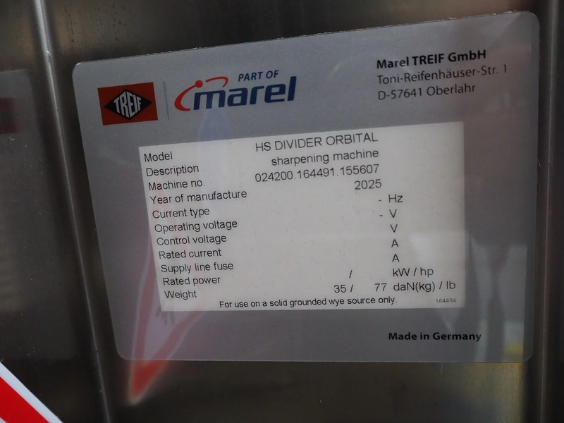 Marel TREIF GmbH knife sharpening machine, model: HS DIVIDER ORBITAL, machine number: 024200.164491.155607, year of construction: 2025, weight: 35 kg, dimensions: 600 mm x 400 mm x 600 mm.