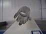 S/s netting machine on plastic plate, dimensions plate: 530 mm x 320 mm, diameter netting machine: 185 mm, total dimensions: 630 mm x 320 mm x 370 mm.