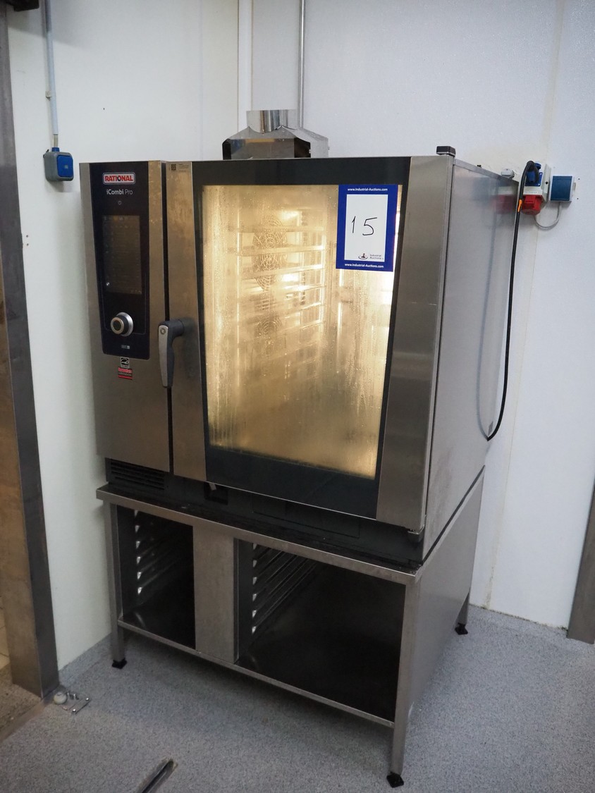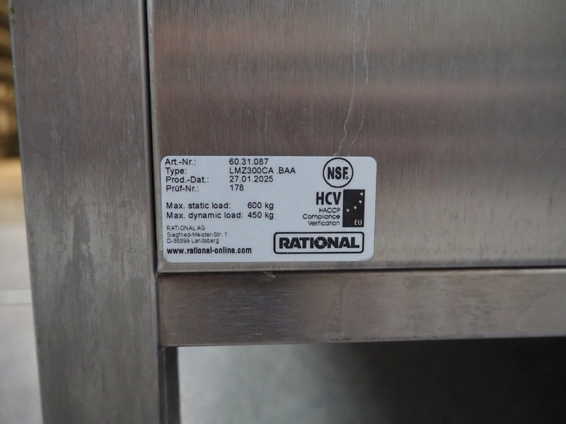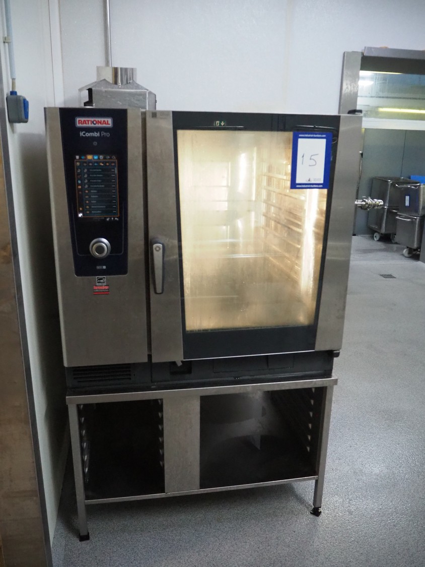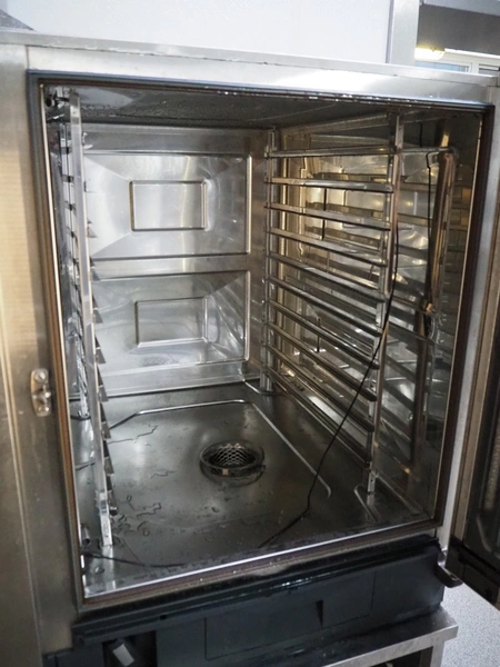 Rational combisteamer, model: iCombi Pro, model number: LM100EG.AXXXXA, serial number: G12SJ25023200294, year of construction: 2025, 230 V, 1 Ph, 50/60 Hz, 1500 W, water pressure: 150-600 kPa, Qn (Hi): 40 kW, gas heated, 10 floors, dimensions floors: (10x) 530 mm x 610 mm, total dimensions: 1100 mm x 1000 mm x 2000 mm.