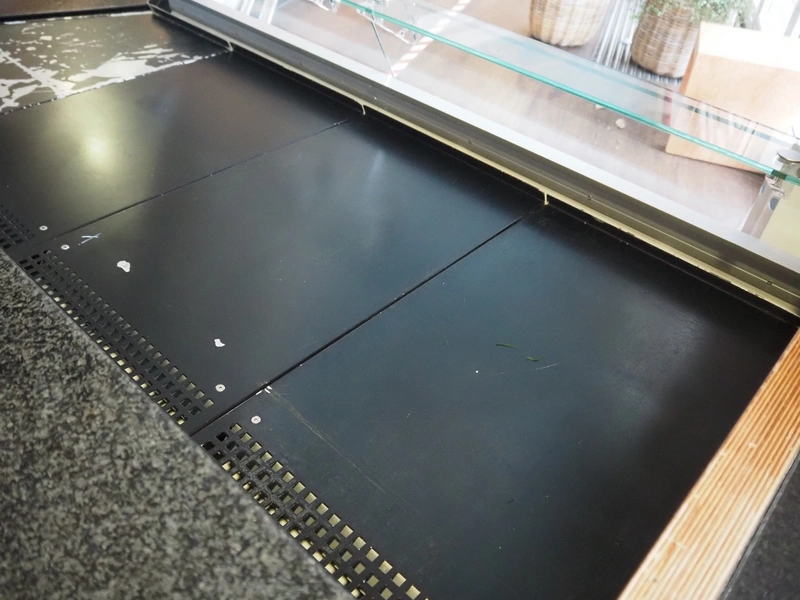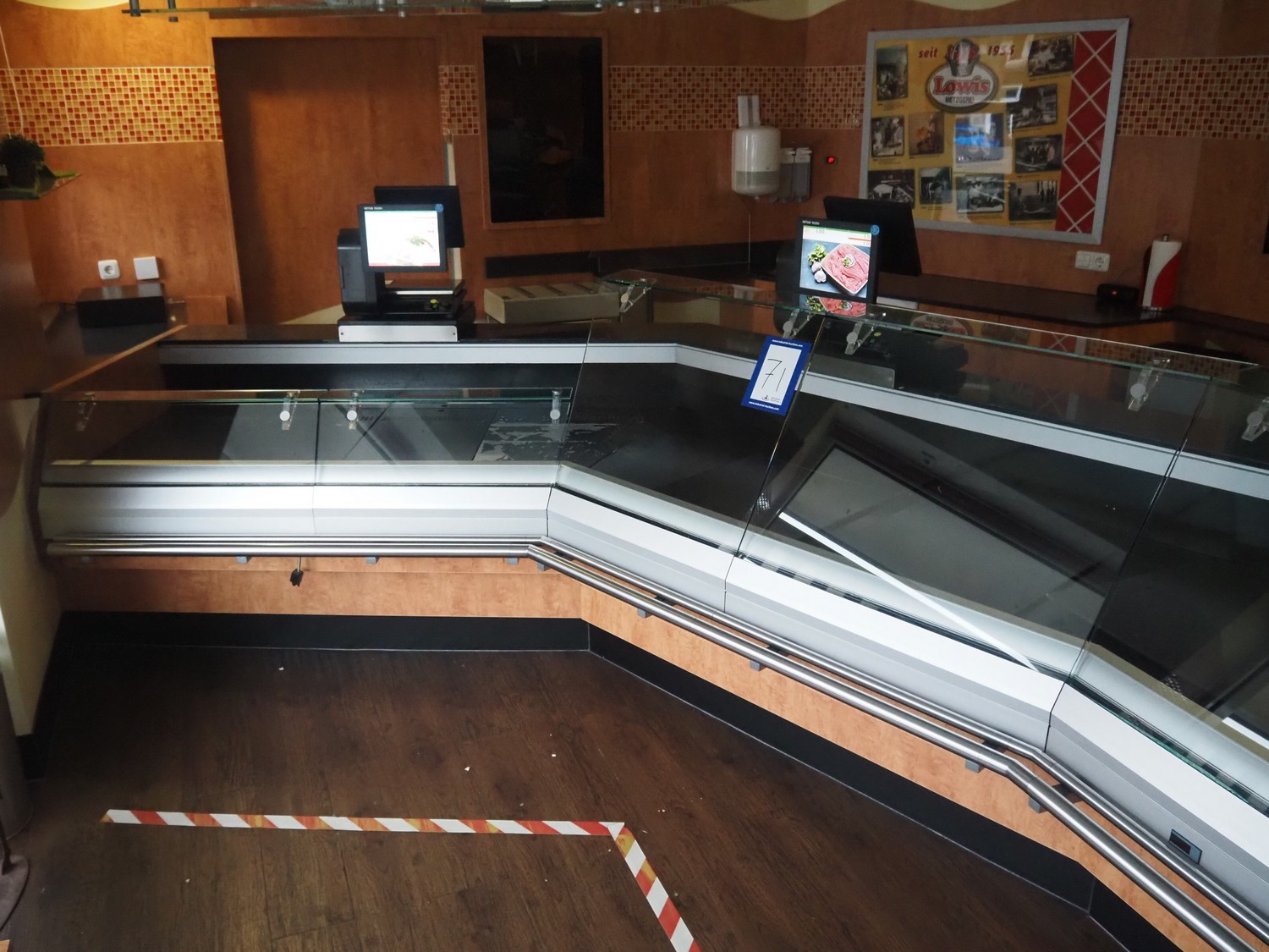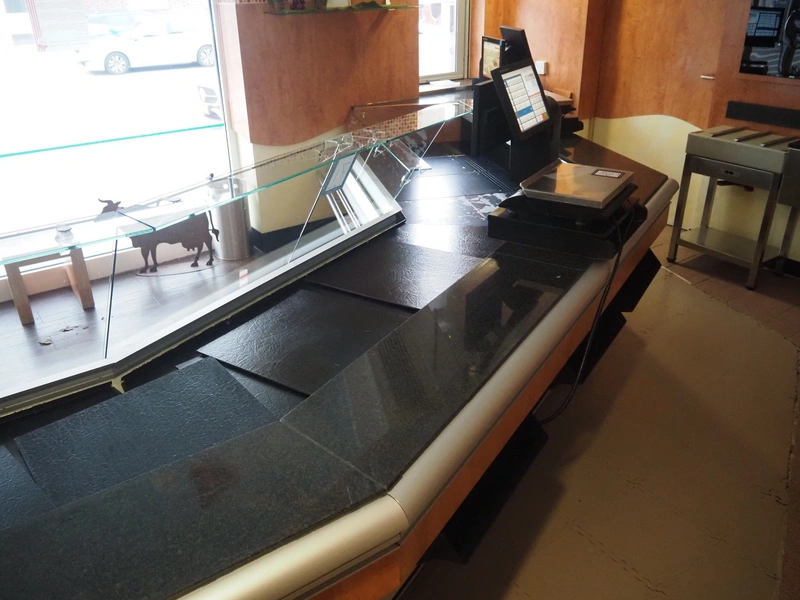 Refrigerated showcase, dimensions: 10770 mm x 1400 mm x 1180 mm.