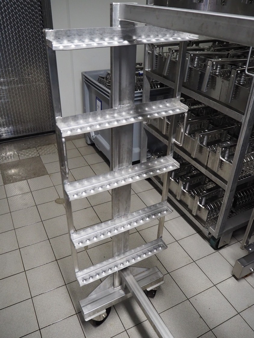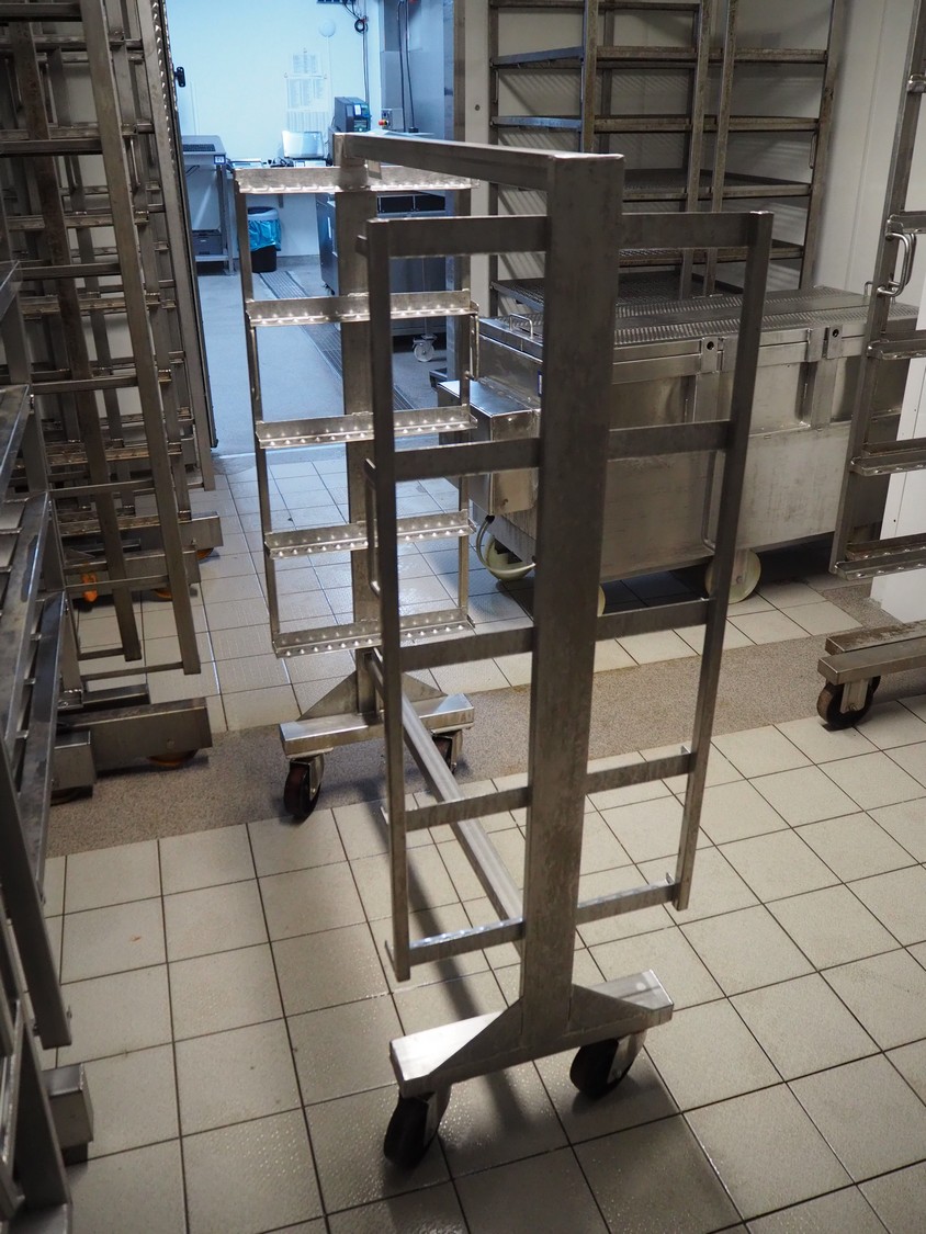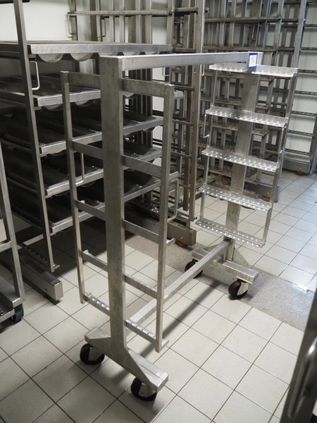 S/s smoke trolley, 5 floors, dimensions floors: (5x) 1000 mm x 450 mm, total dimensions: 1050 mm x 460 mm x 1460 mm.