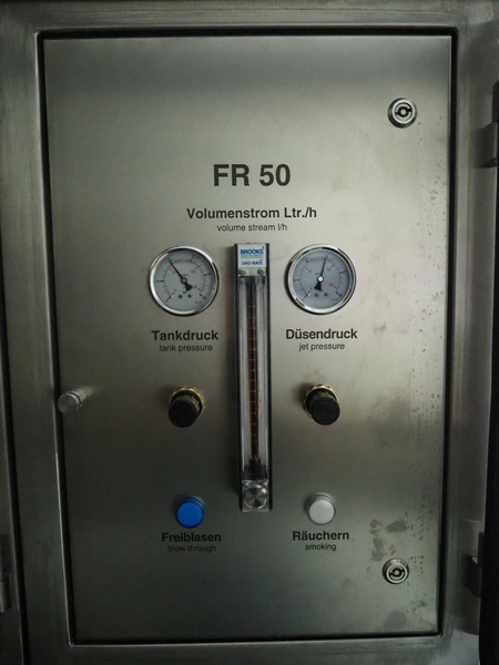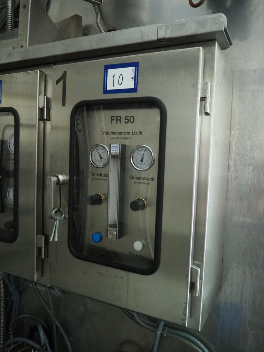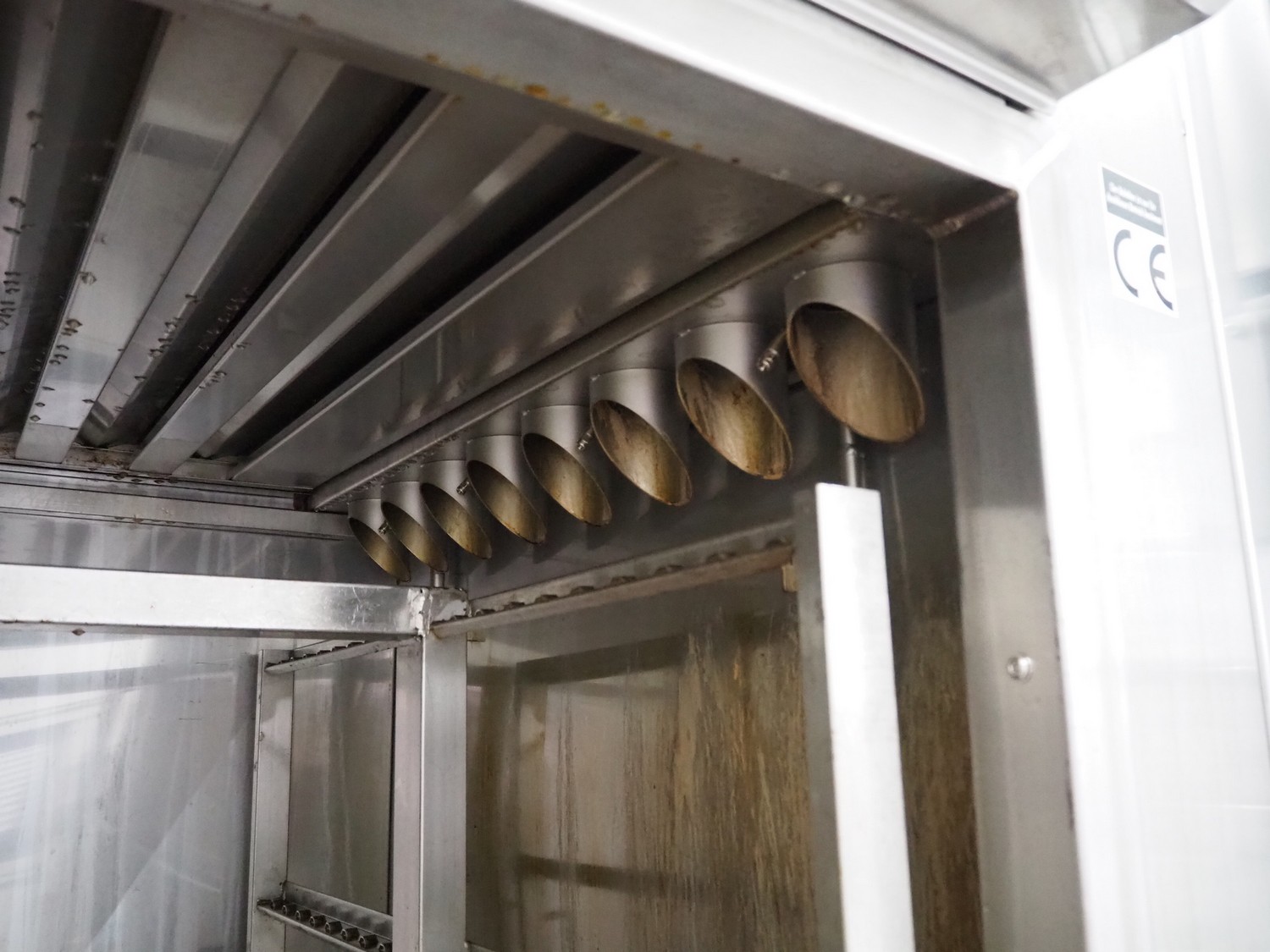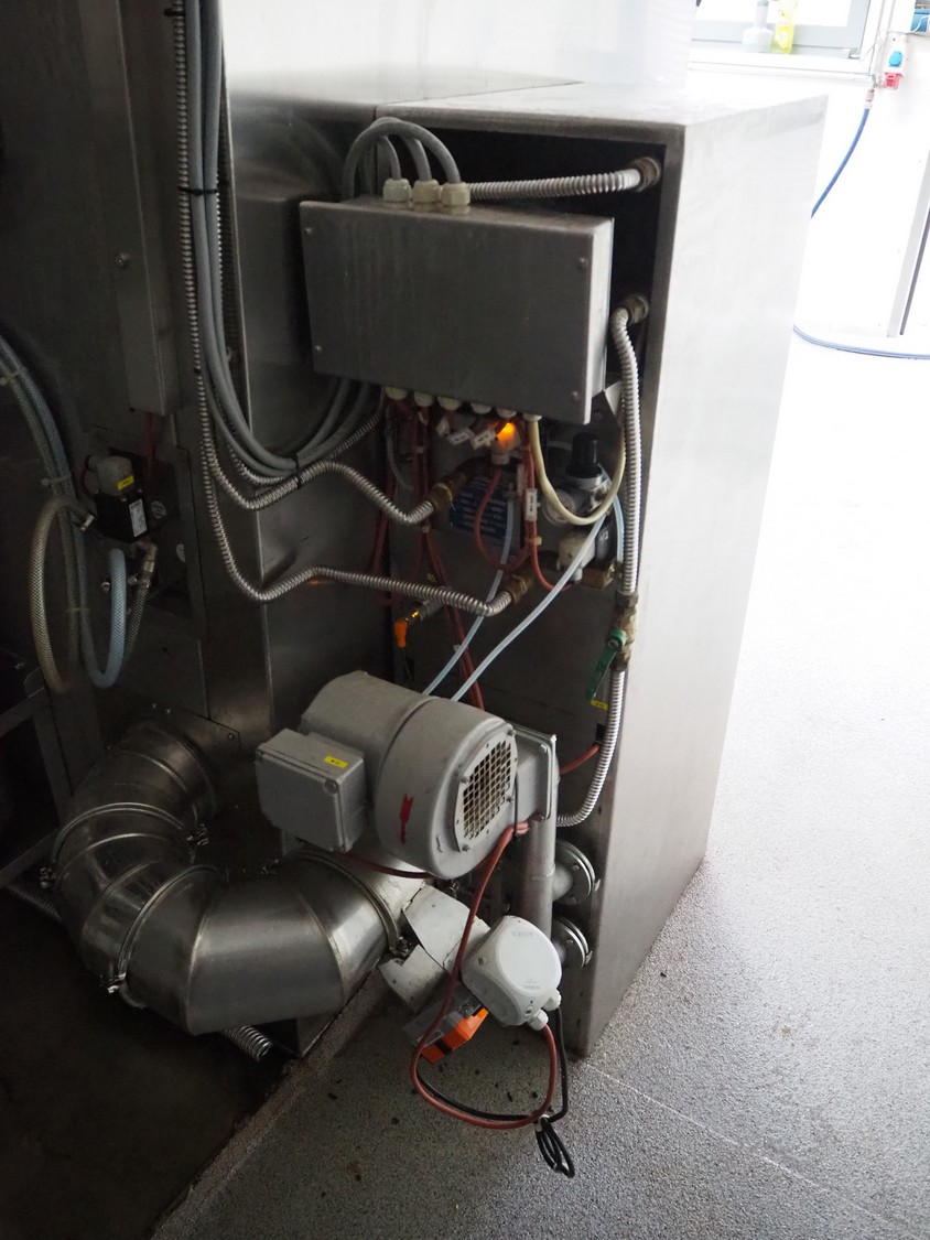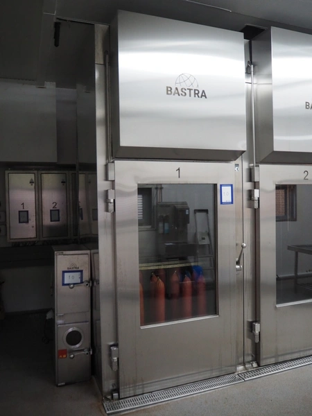 Bastra GmbH universal smoking chamber for 1 smoke trolley, type: 2000 A-FR, serial number: B60076, year of construction: 2024, 230 / 400 V, 3 Ph, 50 Hz, 5.5 kW, volume: 3000 liter, connection liquid smoke: 2.53 kg / hour, nominal capacity: 32.6 kW, equipped with gas heating, climate package, shower, steam cooking, viewing window, PC-monitoring, Bastra FR 50 liquid smoke generator, inside dimensions smoking chamber:1130 mm x 1100 mm x 2100 mm, total dimensions smoking chamber: 1500 mm x 1700 mm x 3300 mm, Bastra smoke generator for woodchips, type: 40 HS, year of construction: 2021, dimensions smoke generator: 340 mm x 1050 mm x 1300 mm, dimensions switch cabinet: 480 mm x 260 mm x 1100 mm, dimensions switch cabinet with frequency convertor: 300 mm x 200 mm x 370 mm, dimensions switch cabinet liquid smoke generator: 480 mm x 300 mm x 700 mm. Smoking chamber needs to be removed by crane.