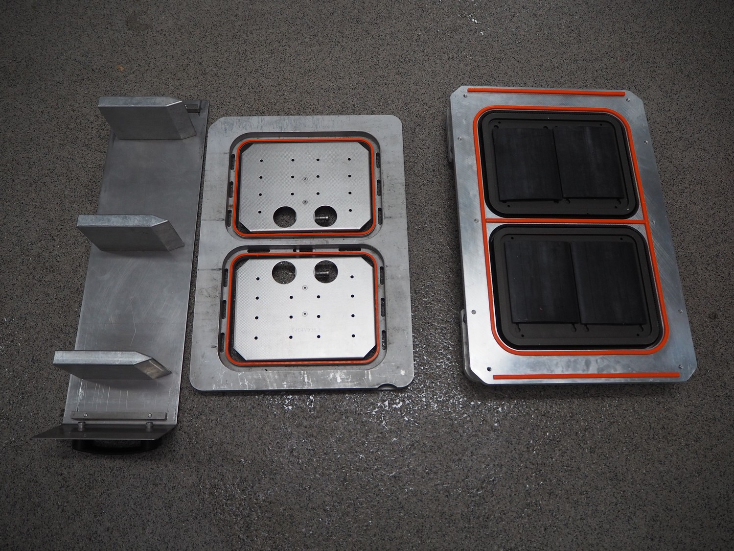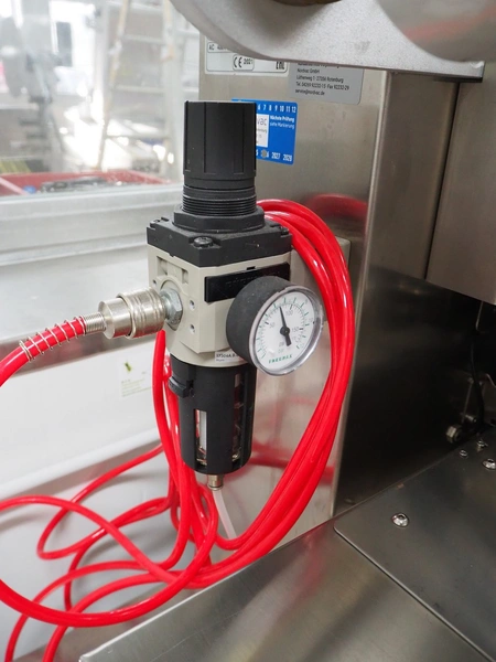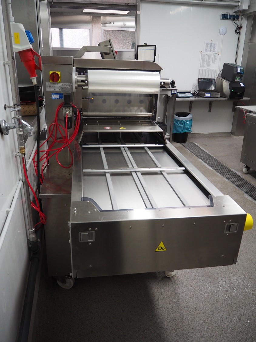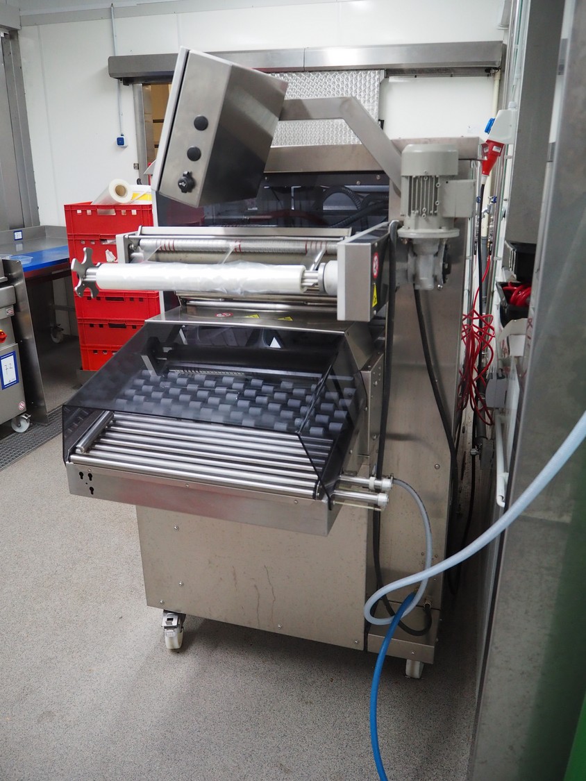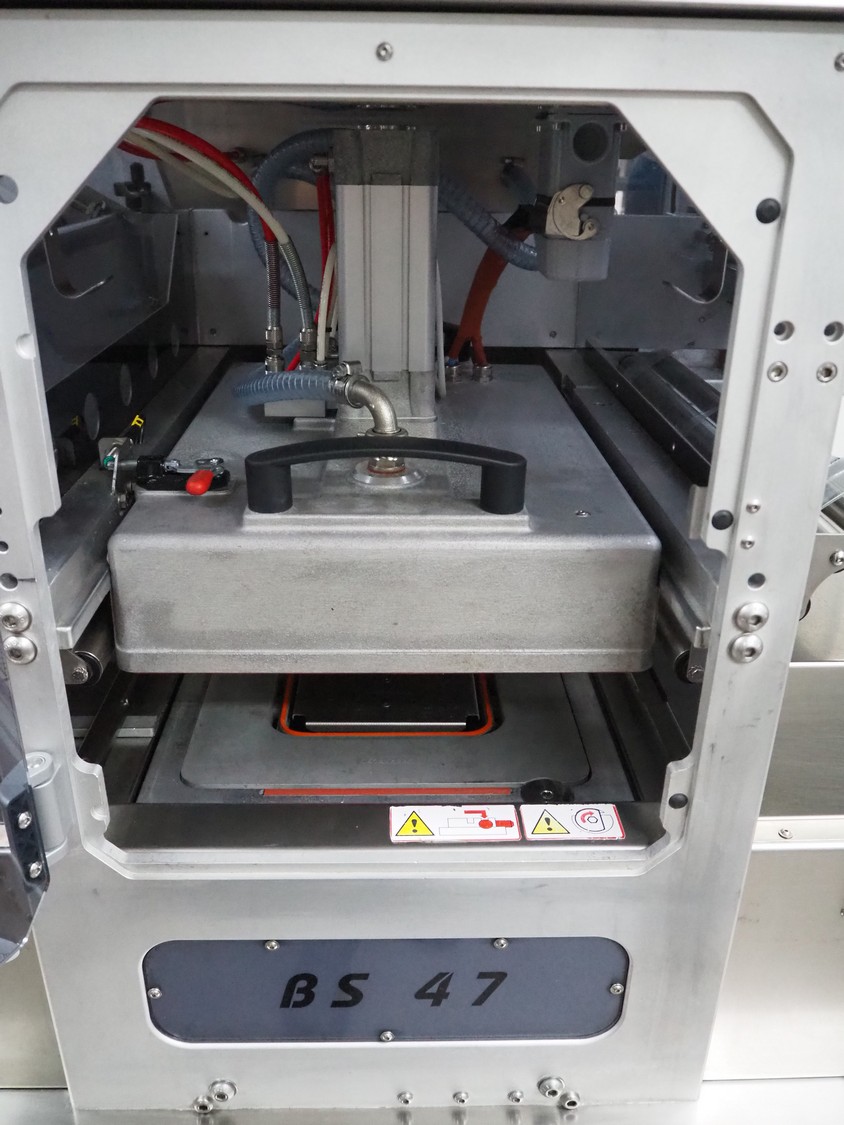 BS Verpackung GmbH/ Boss mobile traysealer, model: BS 47, serial number: 00093-1410V193.11B, year of construction: 2021, 400 V, 3 Ph, 50 Hz, 3.9 kW, film width: 470 mm, dye: (2x) 170 mm x 120 mm, outfeed roller conveyor, roll width: 590 mm, vacuum and gas flush, total dimensions: 2500 mm x 1000 mm x 1800 mm. Including additional dye. Traysealer for tray dimensions 187 mm x 137 mm and 178 mm x 227 mm. Complete overhauled in 2024.