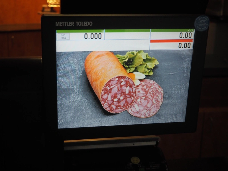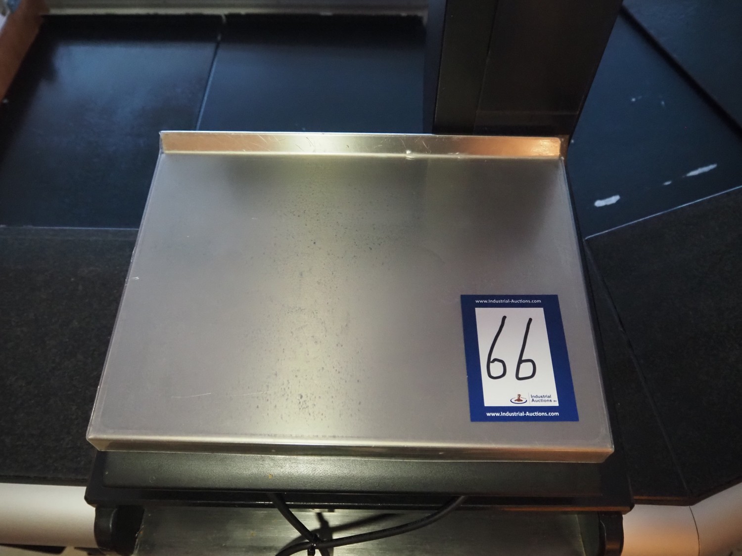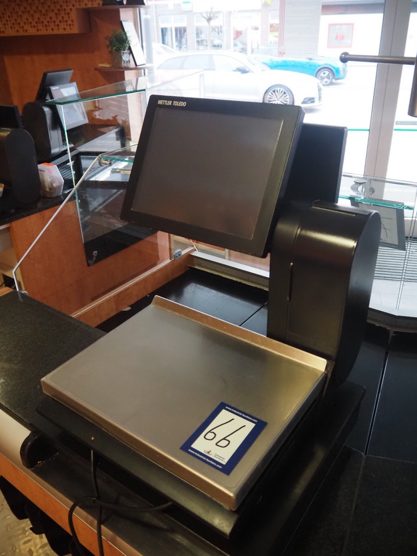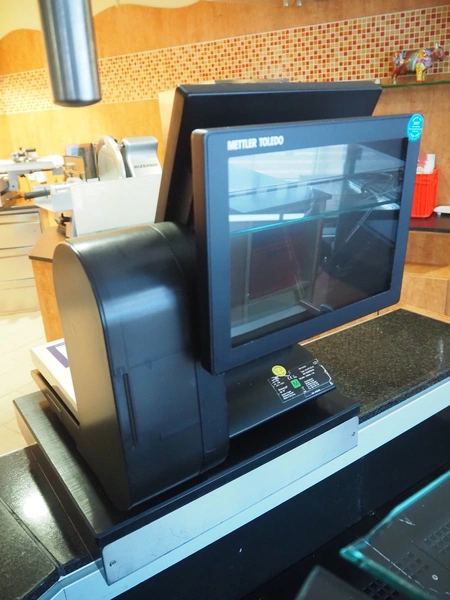 Mettler Toledo weighing scale with printer, type: UC-HTT-M CT, serial number: B428795144, 100/240 V, 50/60 Hz, 1.0 A, maximum: 6/15 kg, minimum: 40 g, e= 2/5 g, scale dimensions: 360 mm x 270 mm, total dimensions: 500 mm x 440 mm x 550 mm.