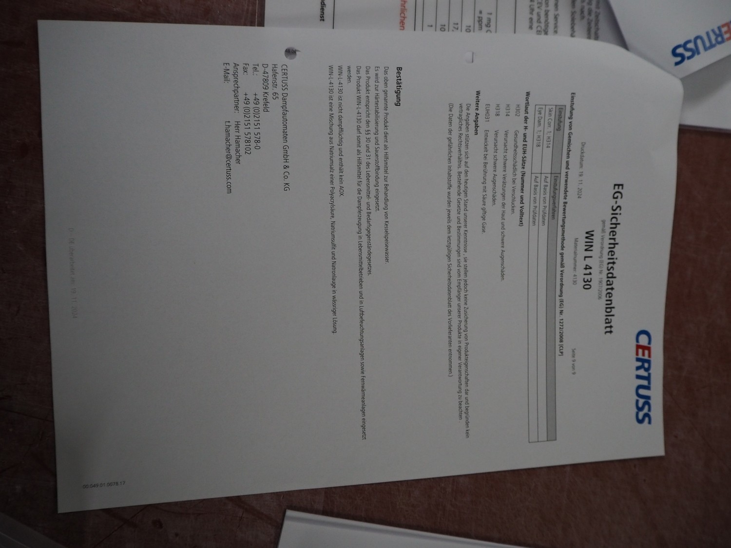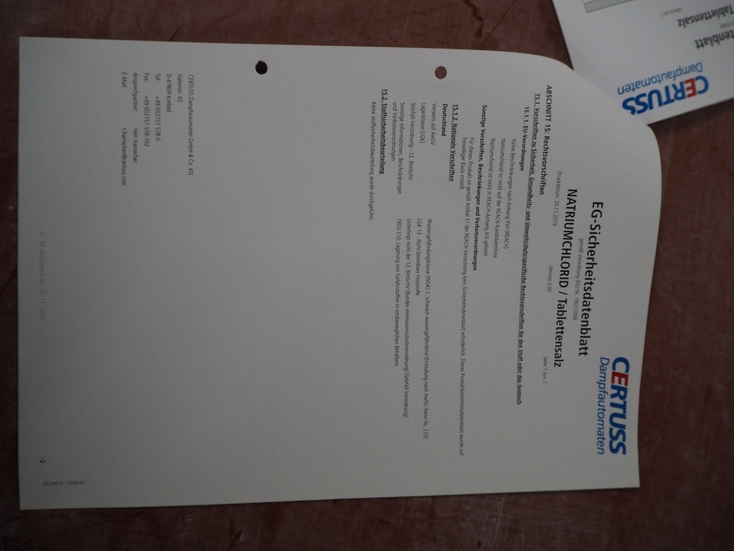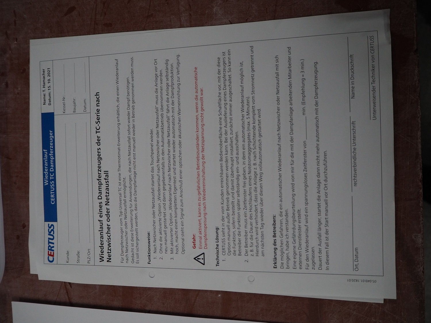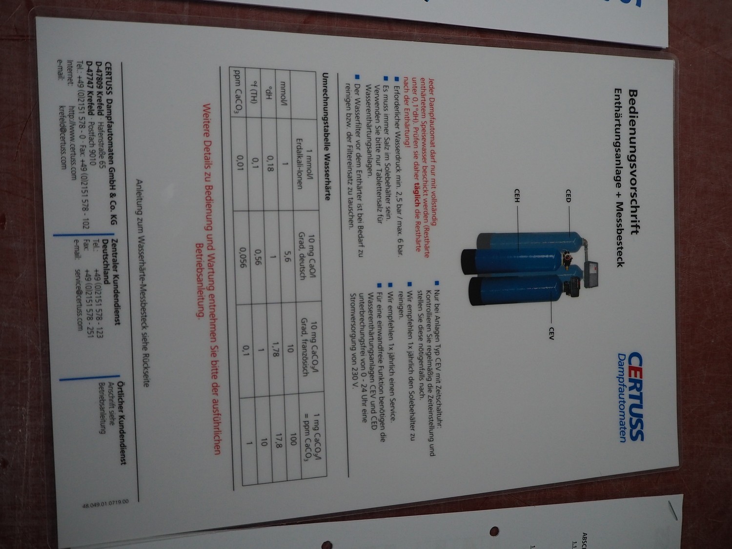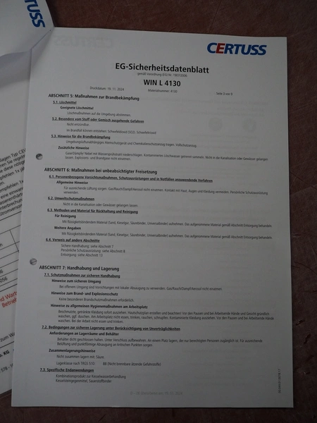 Certuss GmbH steam generator, model: CERTUSS Junior 300 TC, production number: SDE16509, year of construction: 2024, capacity: 300 kg per hour, maximum working pressure: 10 bar, maximum working temperature: 184˚C, volume in liter: 32.48 liter, test pressure: 57 bar, dimensions: 1000 mm x 1500 mm x 2000 mm, Certuss GmbH CVE package plant unit, type: CERTUSS CVE 300 TC, serial number CVE10308, year of construction: 2025, 230 V, 50 Hz, 16 A, 4.42 kVa, dimensions: 1500 mm x 1000 mm x 2000 mm.
