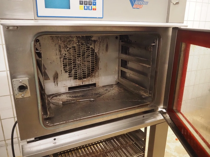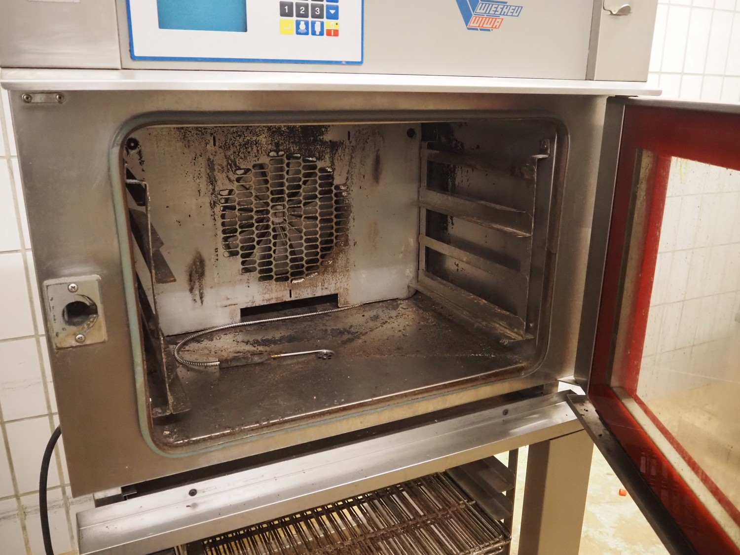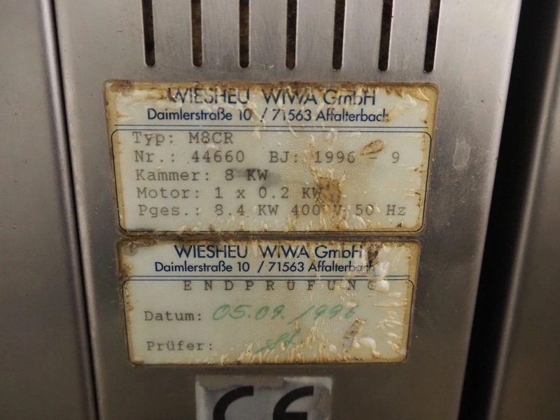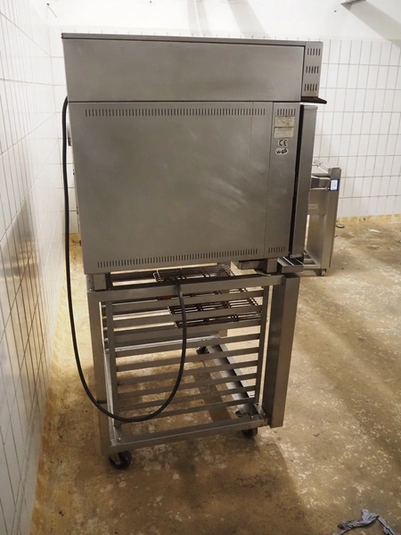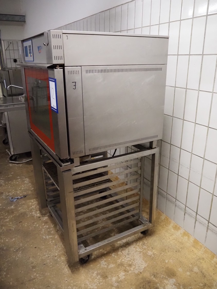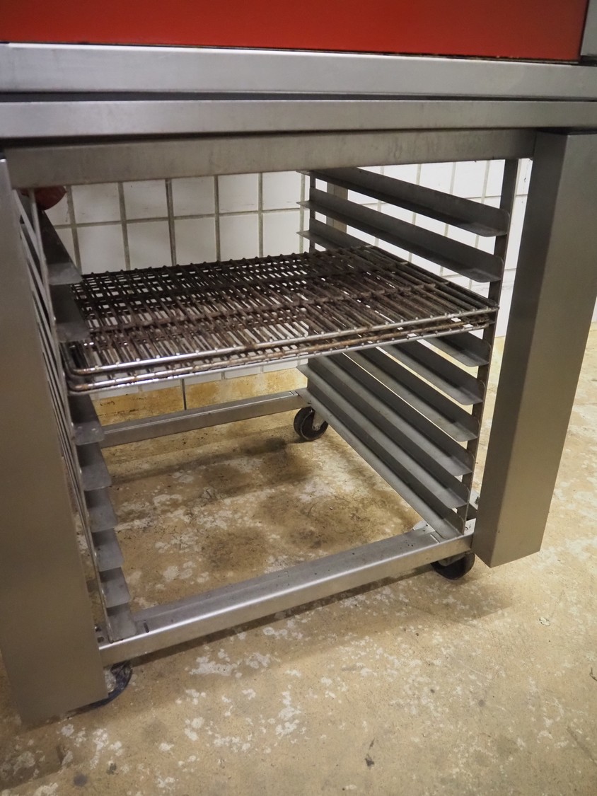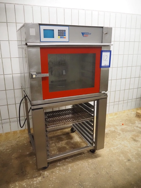 Wiesheu GmbH mobile oven, type: M8CR, number: 44660, year of construction: 1996-9, 400 V, 50 Hz, 8.4 kW, 2 floors, floor dimensions: (2x) 400 mm x 630 mm, dimensions: 930 mm x 820 mm x 1700 mm.