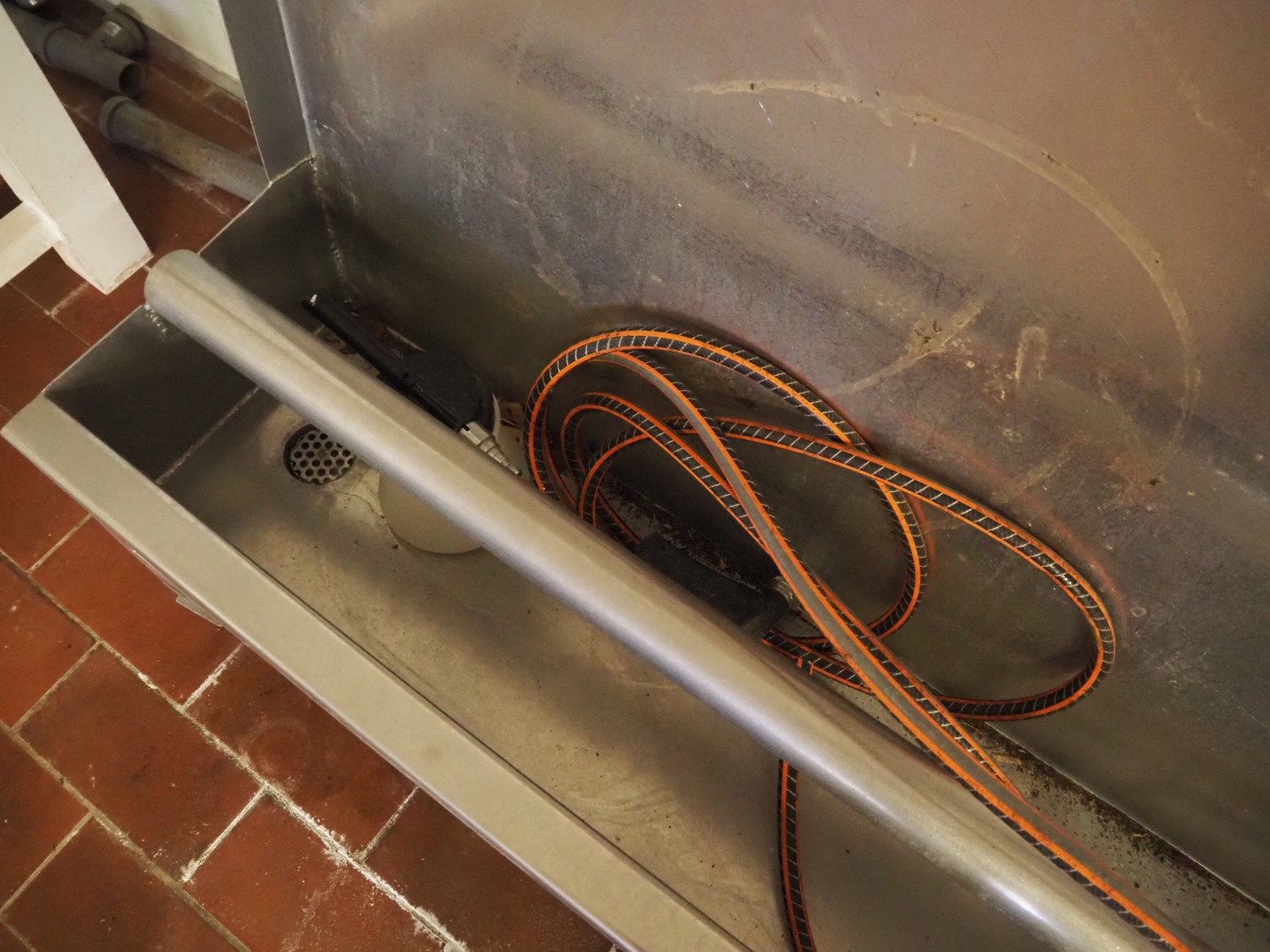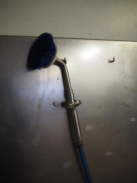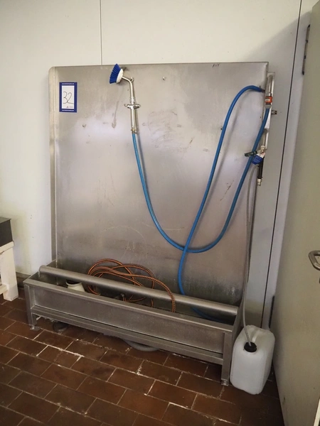 S/s apron washer, dimensions: 1400 mm x 600 mm x 1800 mm.