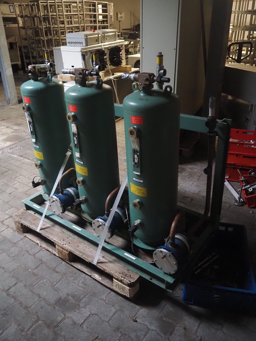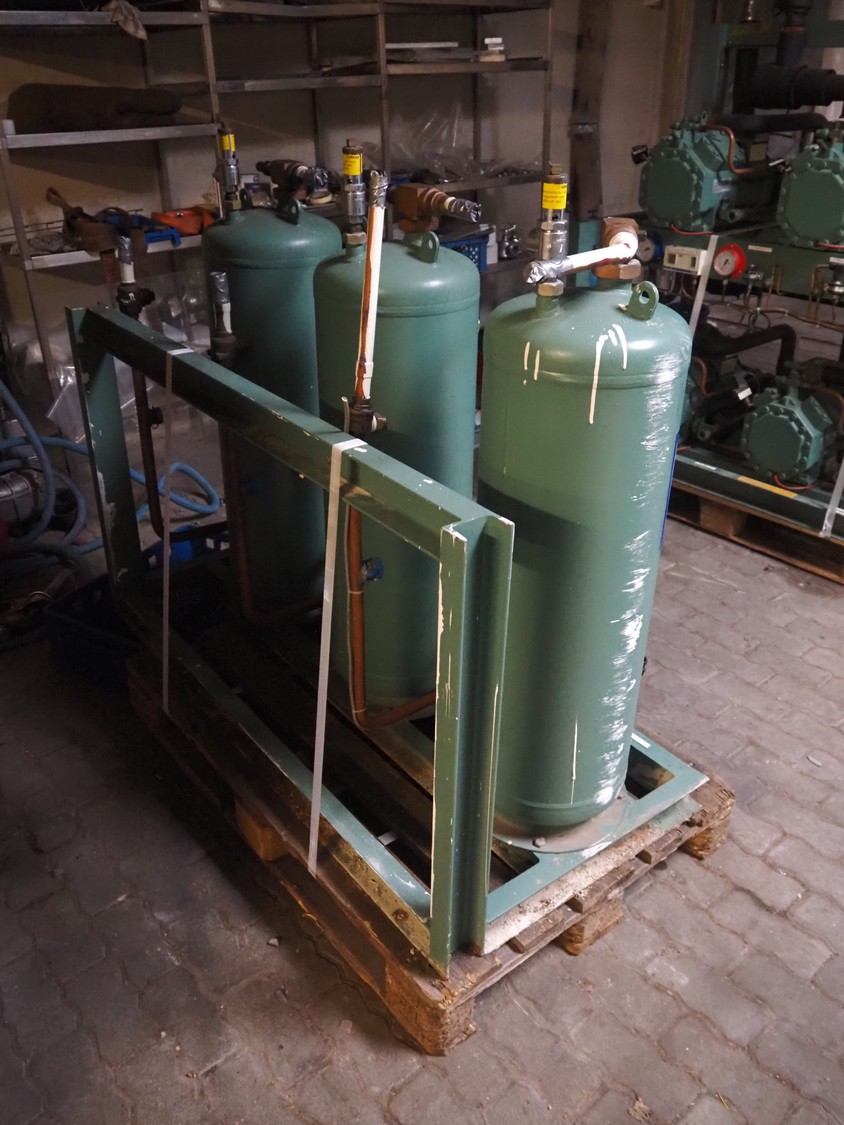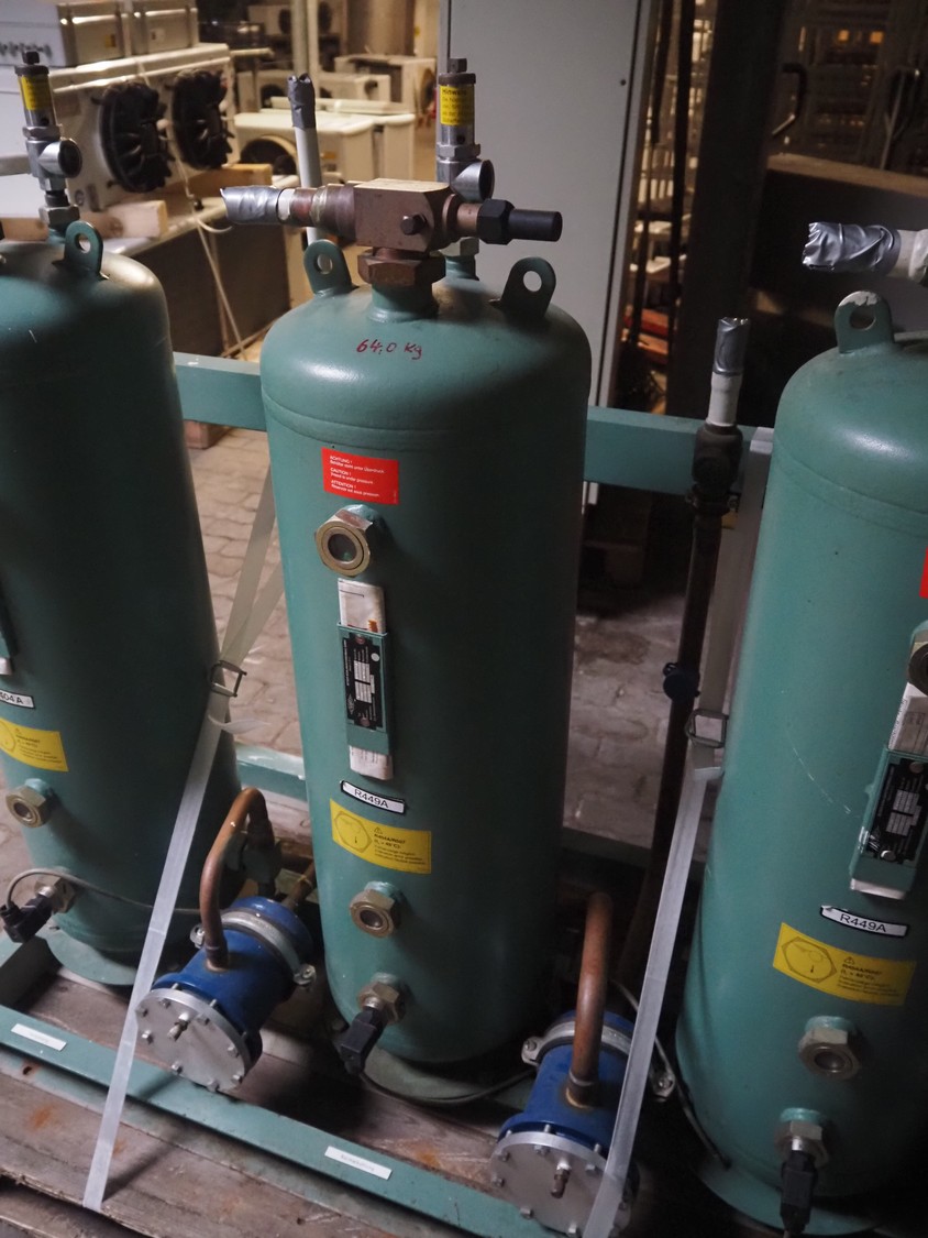 3 Bitzer Kühlmaschinenbau GmbH pressure vessels on steel frame, type: (3x) FS 562, serial numbers: 15895439, 15895440, 15895441, year of construction: 2000, 28 bar, total dimensions: 1400 mm x 650 mm x 1170 mm.