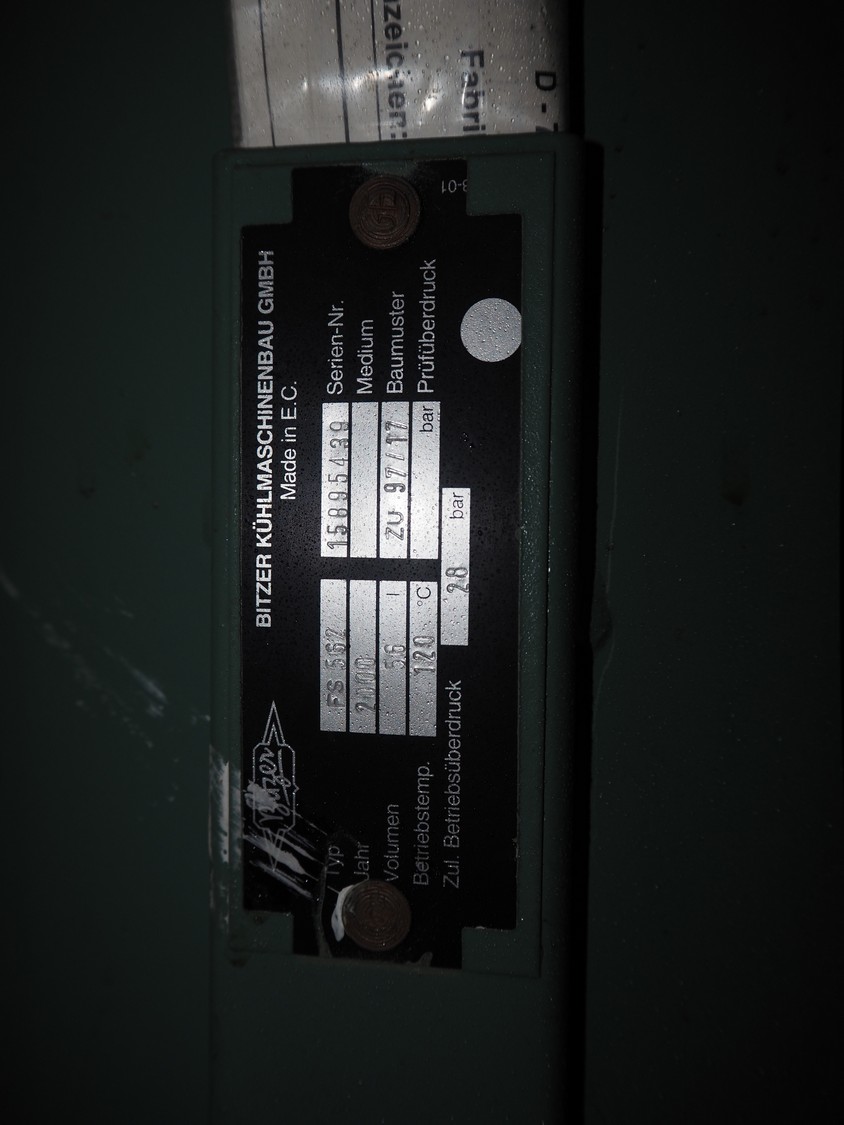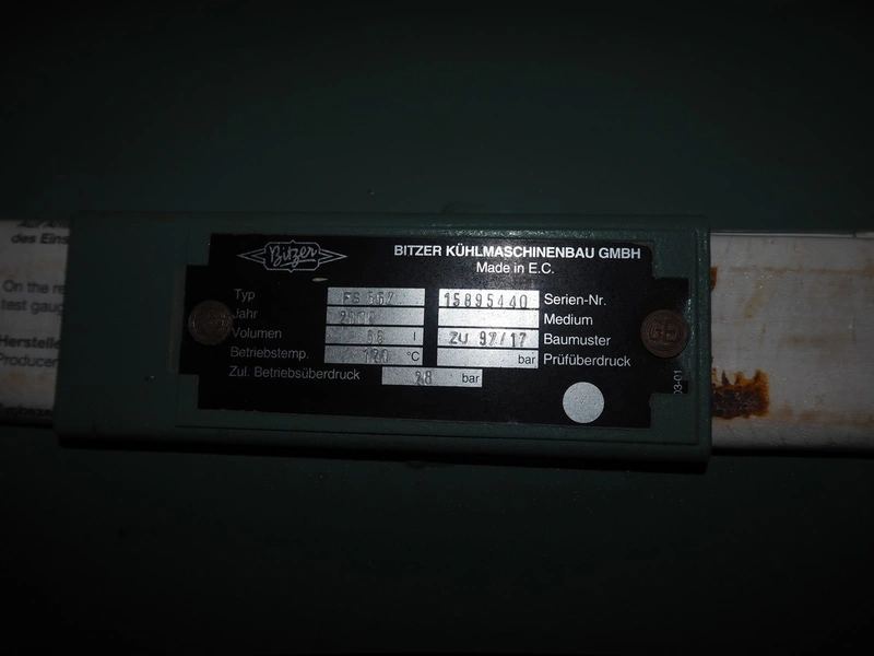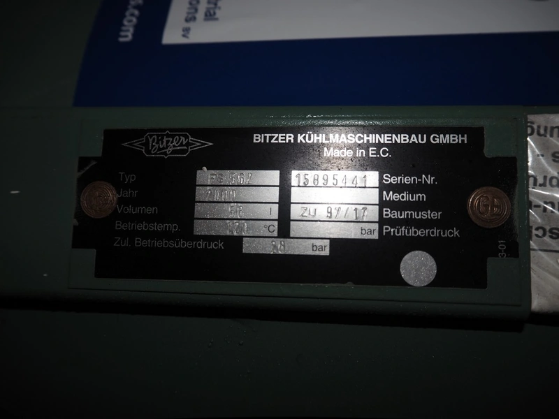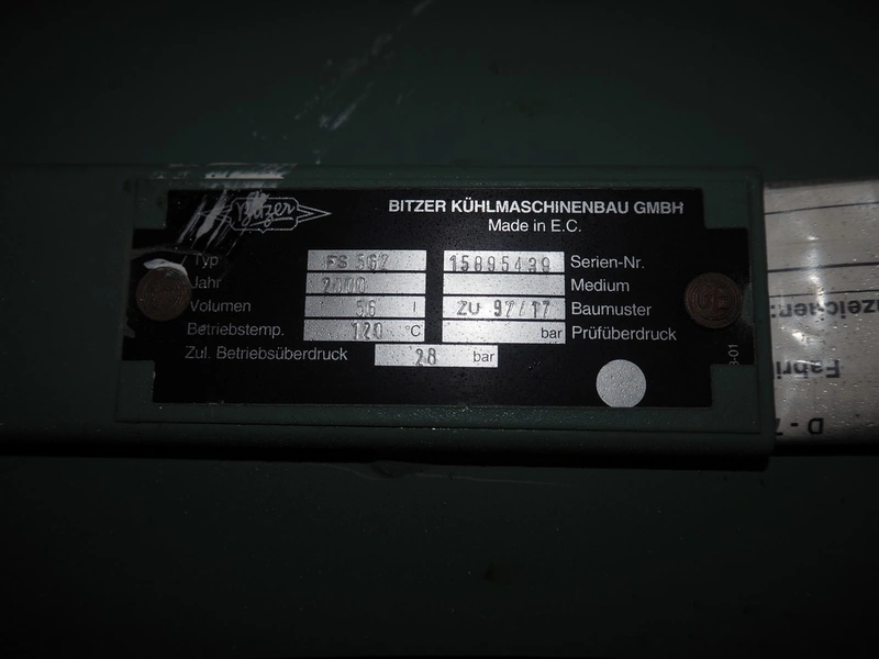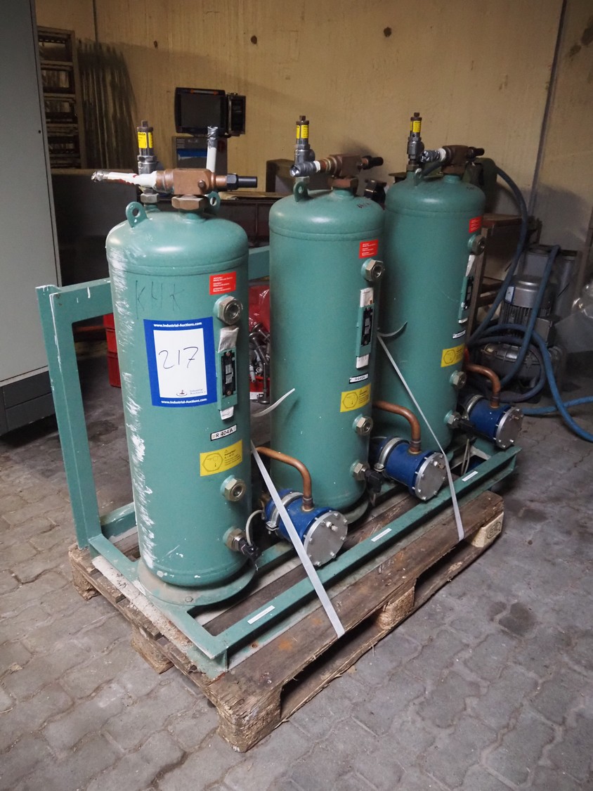 3 Bitzer Kühlmaschinenbau GmbH pressure vessels on steel frame, type: (3x) FS 562, serial numbers: 15895439, 15895440, 15895441, year of construction: 2000, 28 bar, total dimensions: 1400 mm x 650 mm x 1170 mm.
