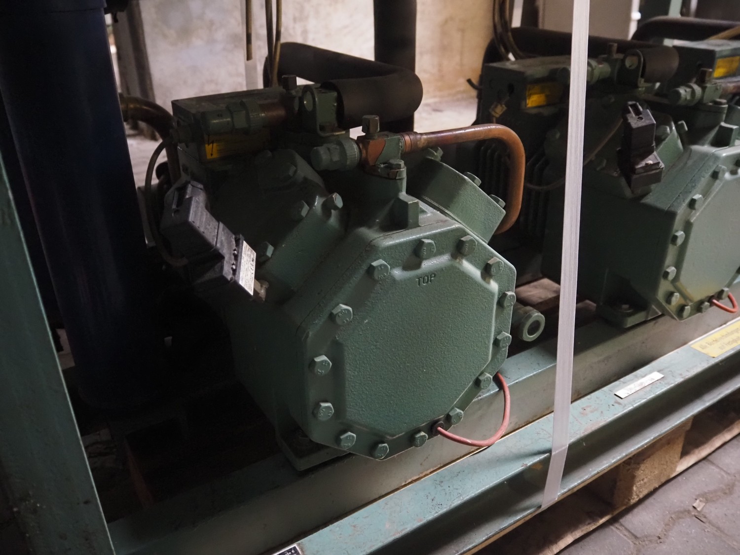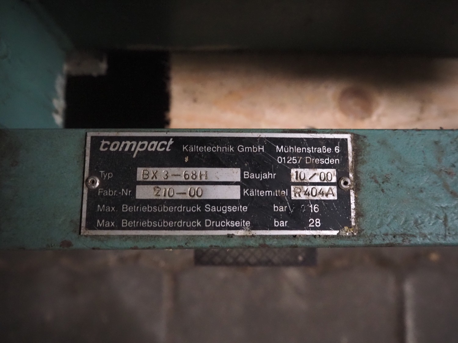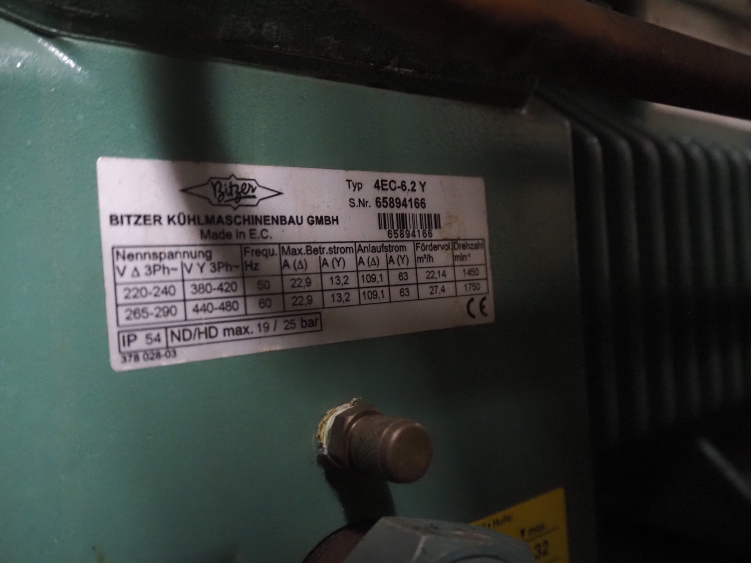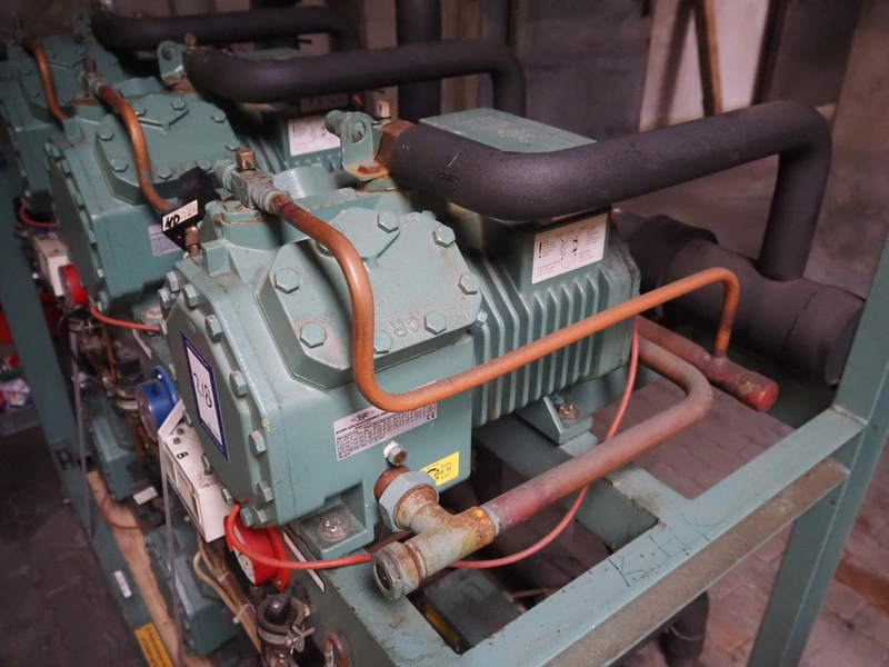 Compact Kältetechnik GmbH compressor rack, type: BX 3-68H, serial number: 210-00, year of construction: 10/00, 28/16 bar, refrigerant: R404A, consisting of: (6x) Bitzer Kühlmaschinenbau GmbH cooling compressors, type: (3x) 4EC-4.2 Y, (3x) 4EC-6.2 Y, 380 / 420 / 440 / 480 V, 3 Ph, 50/60 Hz, capacity: 22.14/27.4 m³ per hour, dimensions: 1650 mm x 800 mm x 1720 mm.