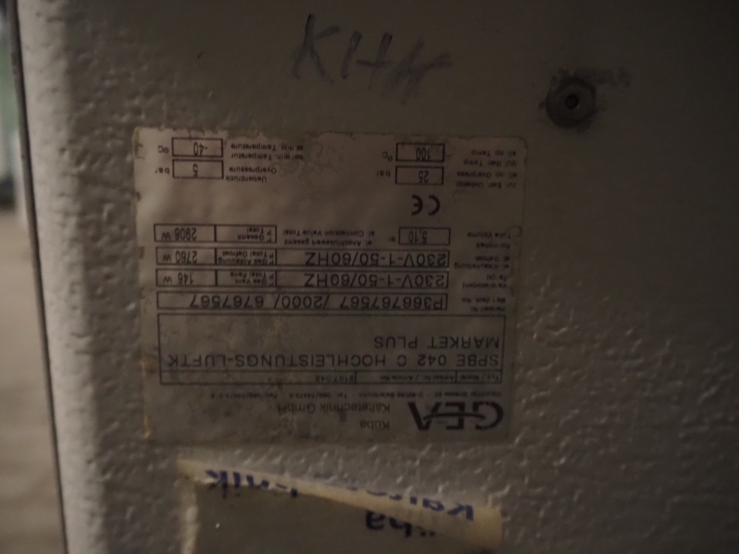 2 GEA Küba Kältetechnik GmbH evaporators, (1x) type: SPBE 042, number: P366767567/2000/6767567, year of construction: 2000, 230/400 V, 1 Ph, 50/60 Hz, 2908 W, dimensions: 1280 mm x 420 mm x 450 mm, (1x) type: SPB 032, number: P2566849577/2000/6684957, year of construction: 2000, 230/400 V, 1 Ph, 50/60 Hz, 148 W, dimensions: 1280 mm x 420 mm x 450 mm.