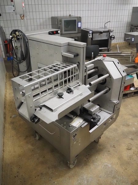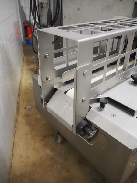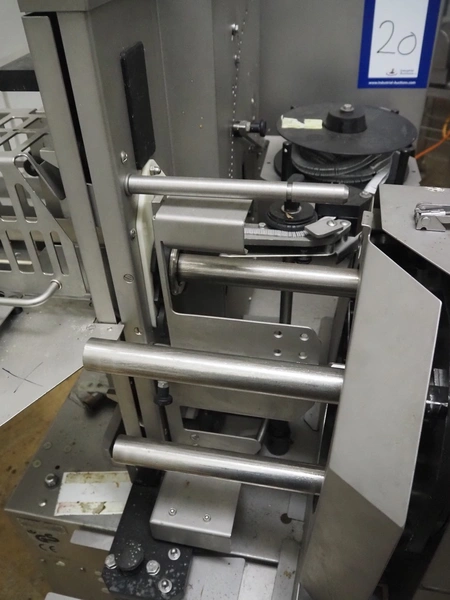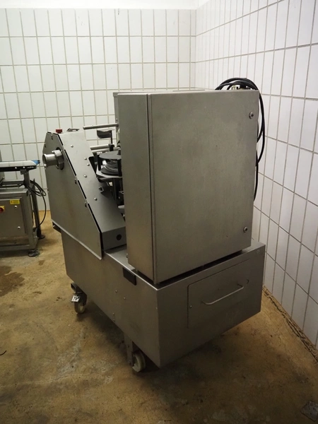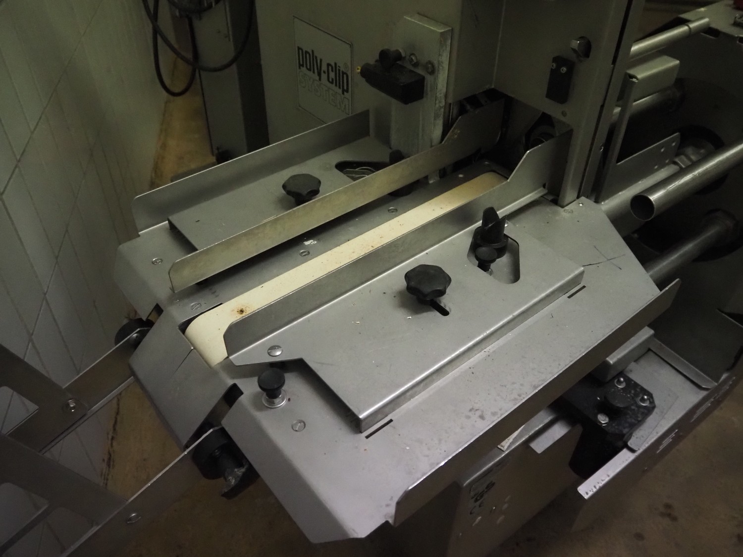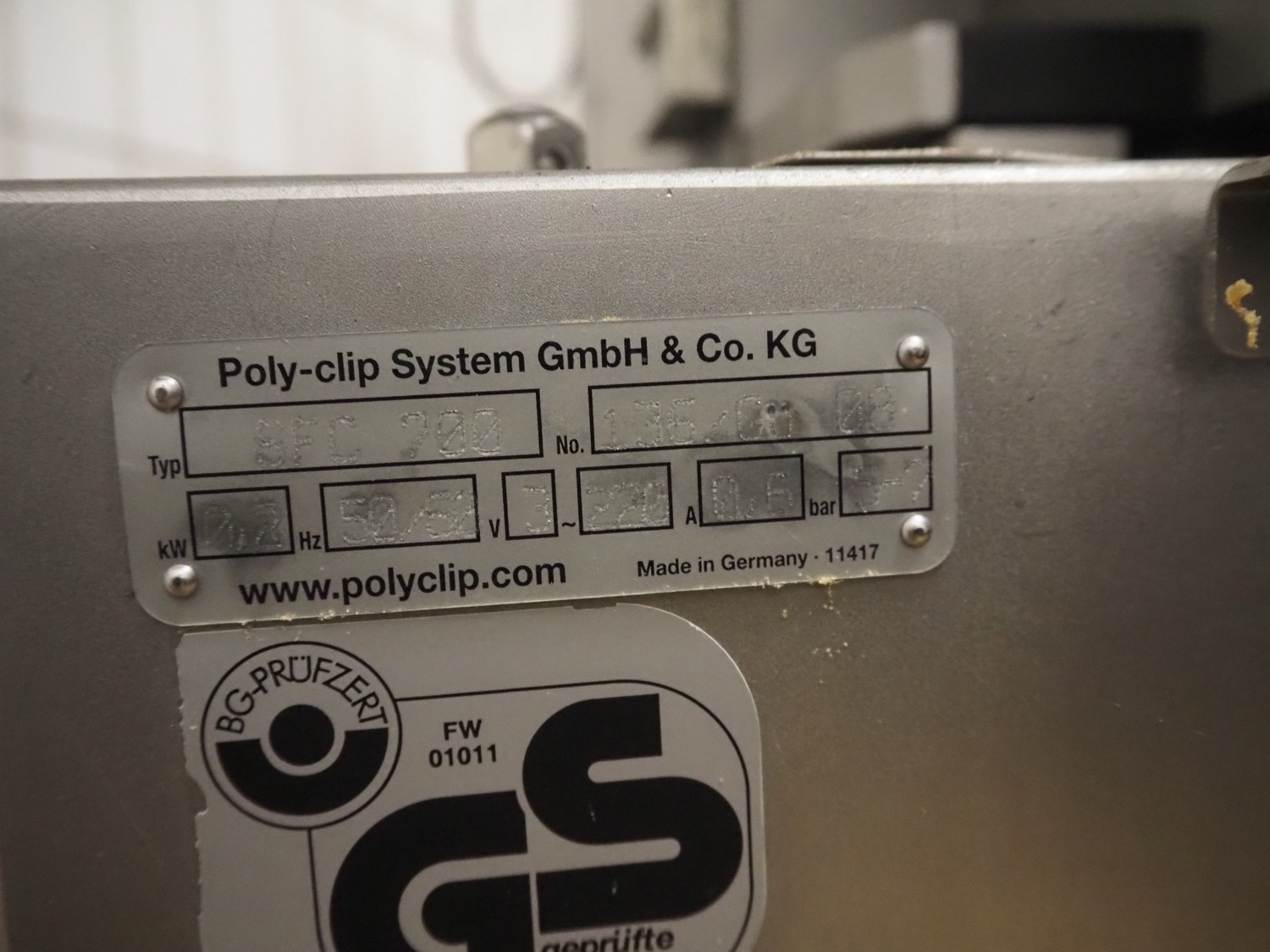 Poly-clip System GmbH & Co. KG mobile automatic clipper, type: SFC 700 Drilling, serial number: 136/GU 08, 220 V, 3 Ph, 50/60 Hz, 0.6 A, 0.2 kW, plastic belt, belt width: 70 mm, diameter pipe: 55, total dimensions: 1220 mm x 1200 mm x 1400 mm.