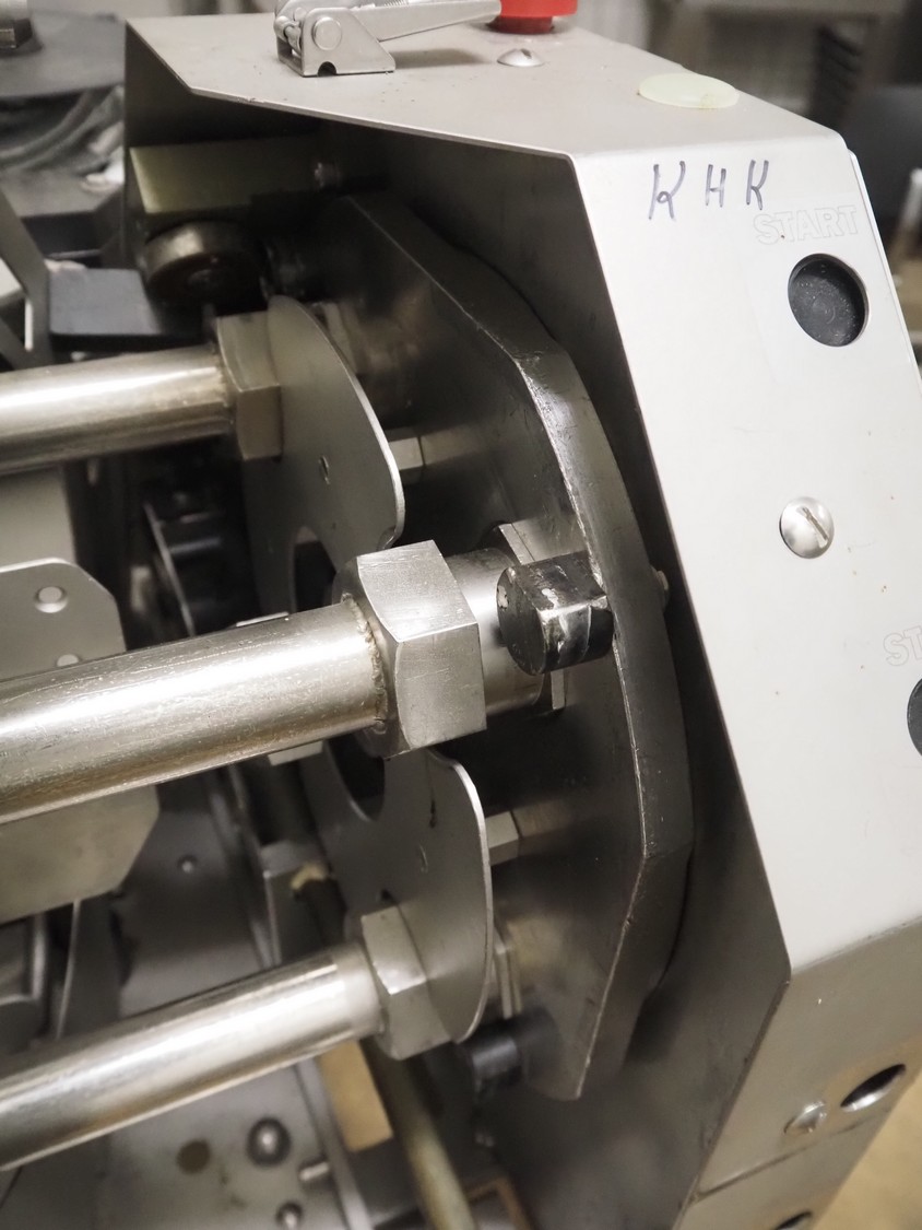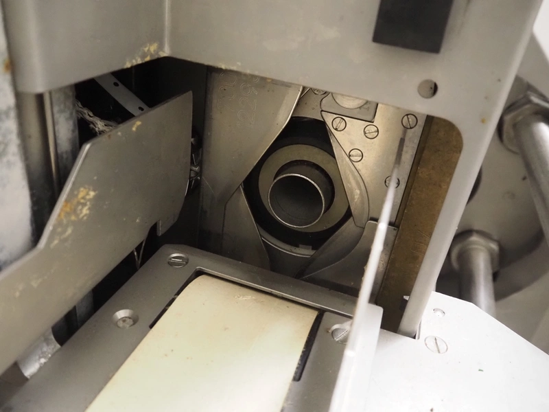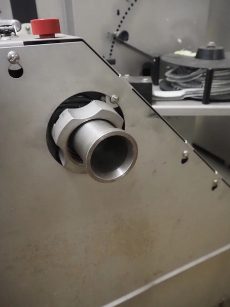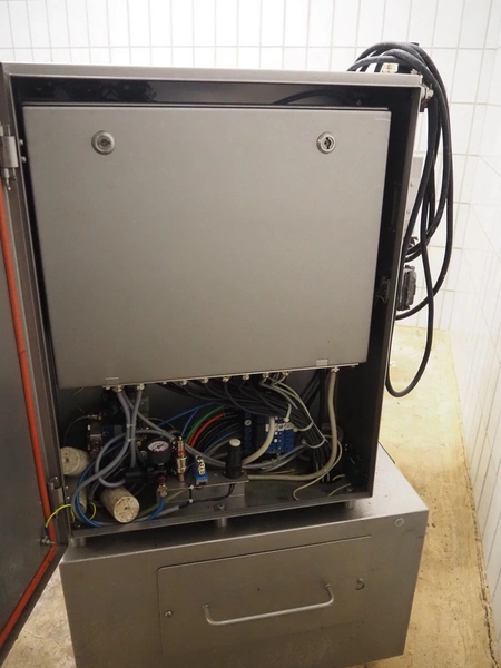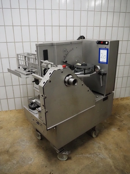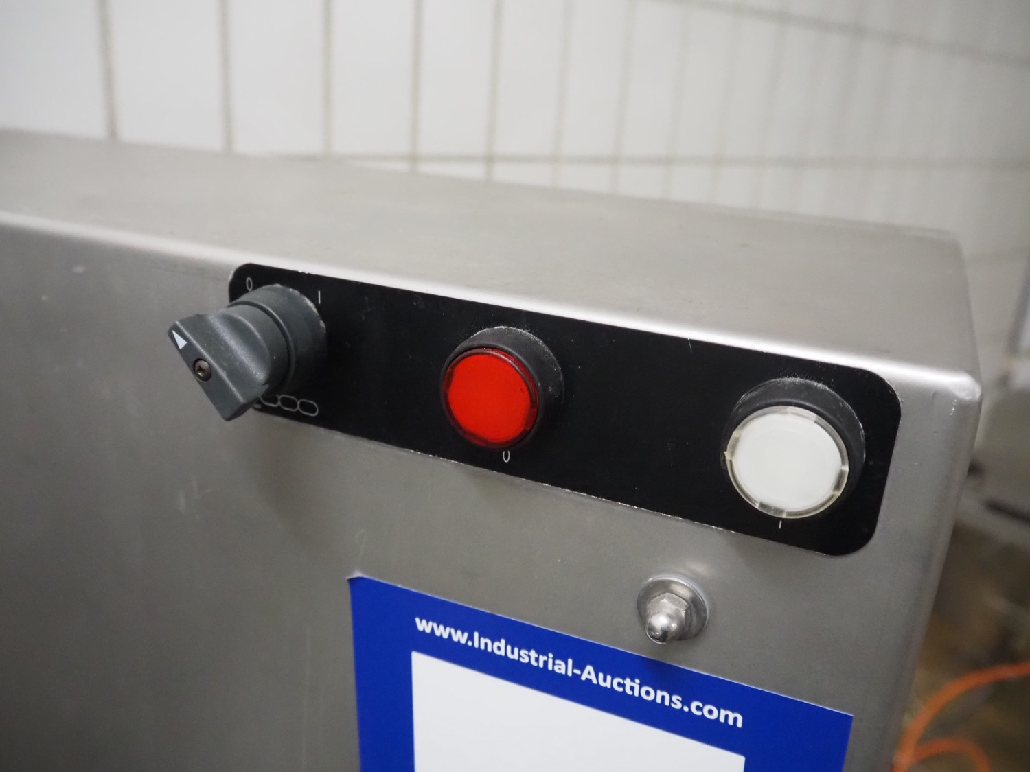 Poly-clip System GmbH & Co. KG mobile automatic clipper, type: SFC 700 Drilling, serial number: 136/GU 08, 220 V, 3 Ph, 50/60 Hz, 0.6 A, 0.2 kW, plastic belt, belt width: 70 mm, diameter pipe: 55, total dimensions: 1220 mm x 1200 mm x 1400 mm.