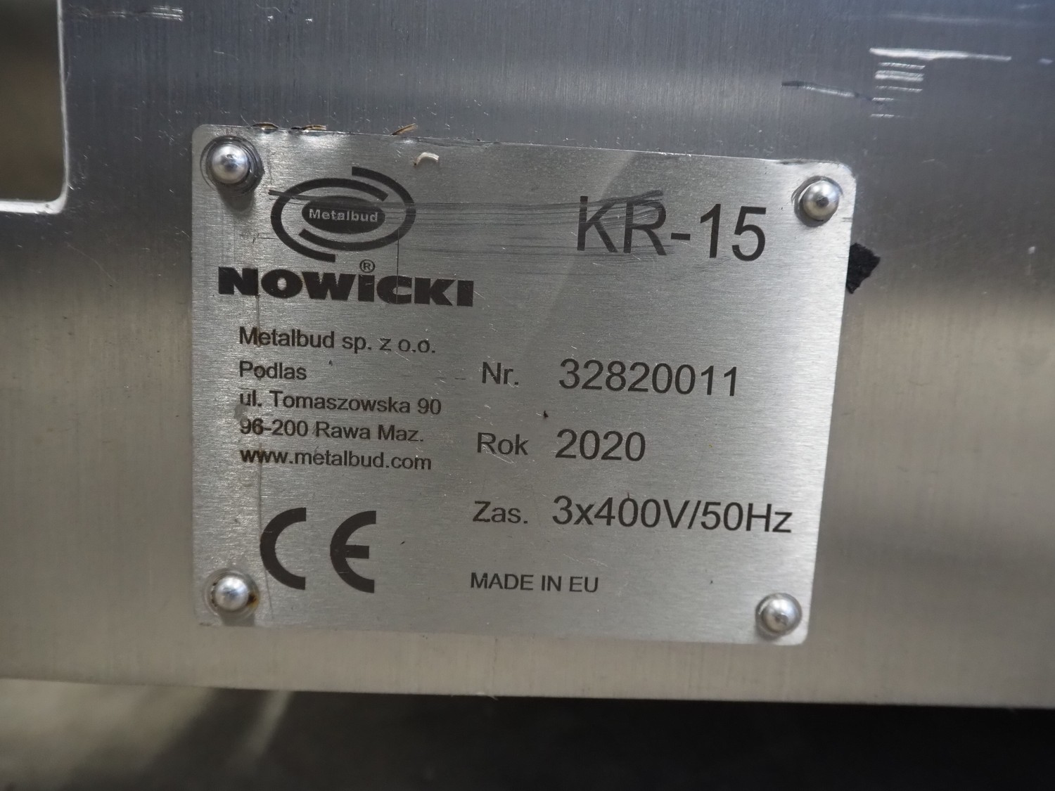 Nowicki mobile micro cutter, model: KR-15, number: 32820011, year of construction: 2020, 400 V, 3 Ph, 50 Hz, dimensions: 1700 mm x 950 mm x 700 mm.
