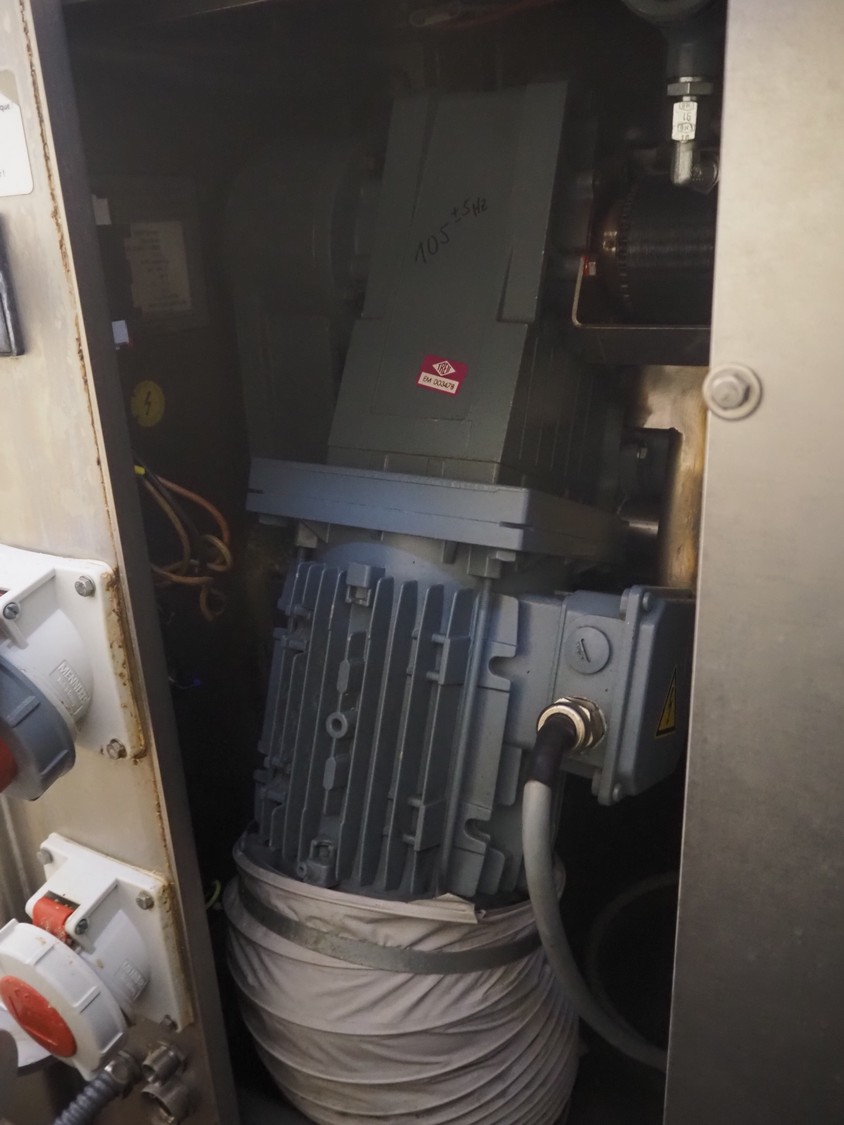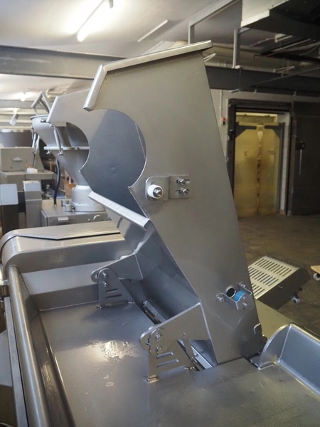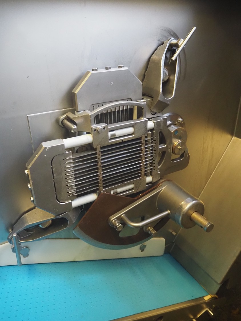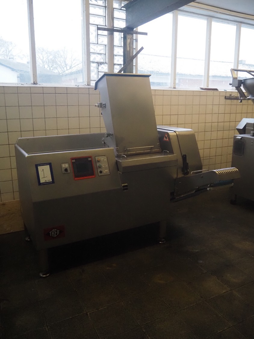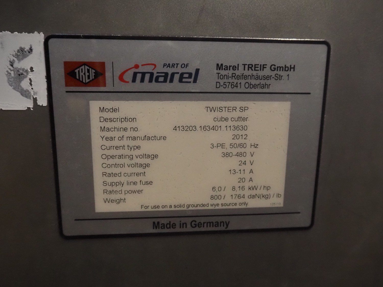 Treif Maschinenbau GmbH dicer, model: TWISTER SP, machine number: 413203.163401.113630, year of construction: 2012, 380/480 V, 3 Ph, 50/60 Hz, 20 A, 6/8.16 kW, weight: 800 Kg, plastic belt, belt width: 245 mm, dimensions chamber: 120 mm x 120 mm, total dimensions: 2020 mm x 1600 mm x 1920 mm.