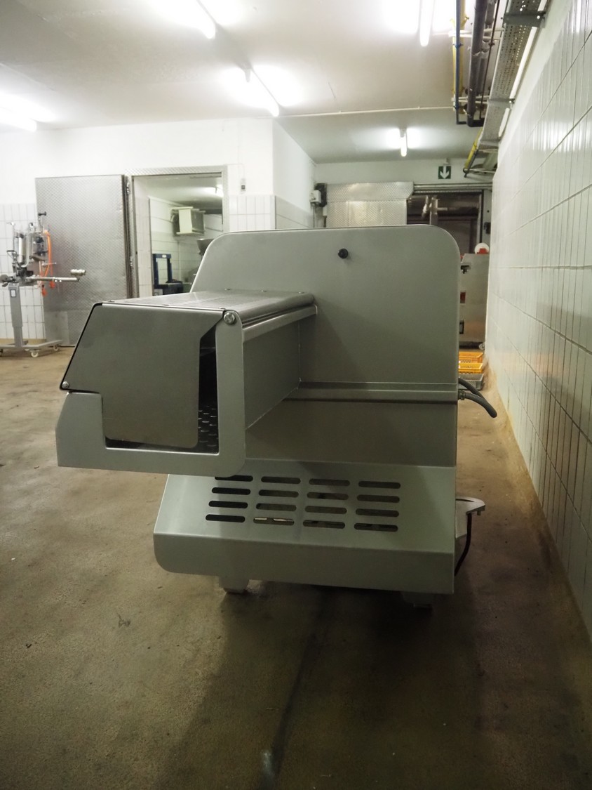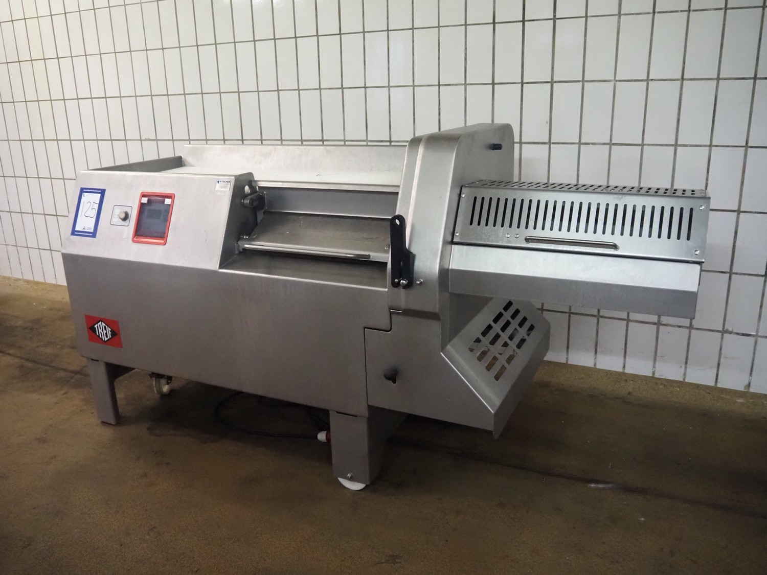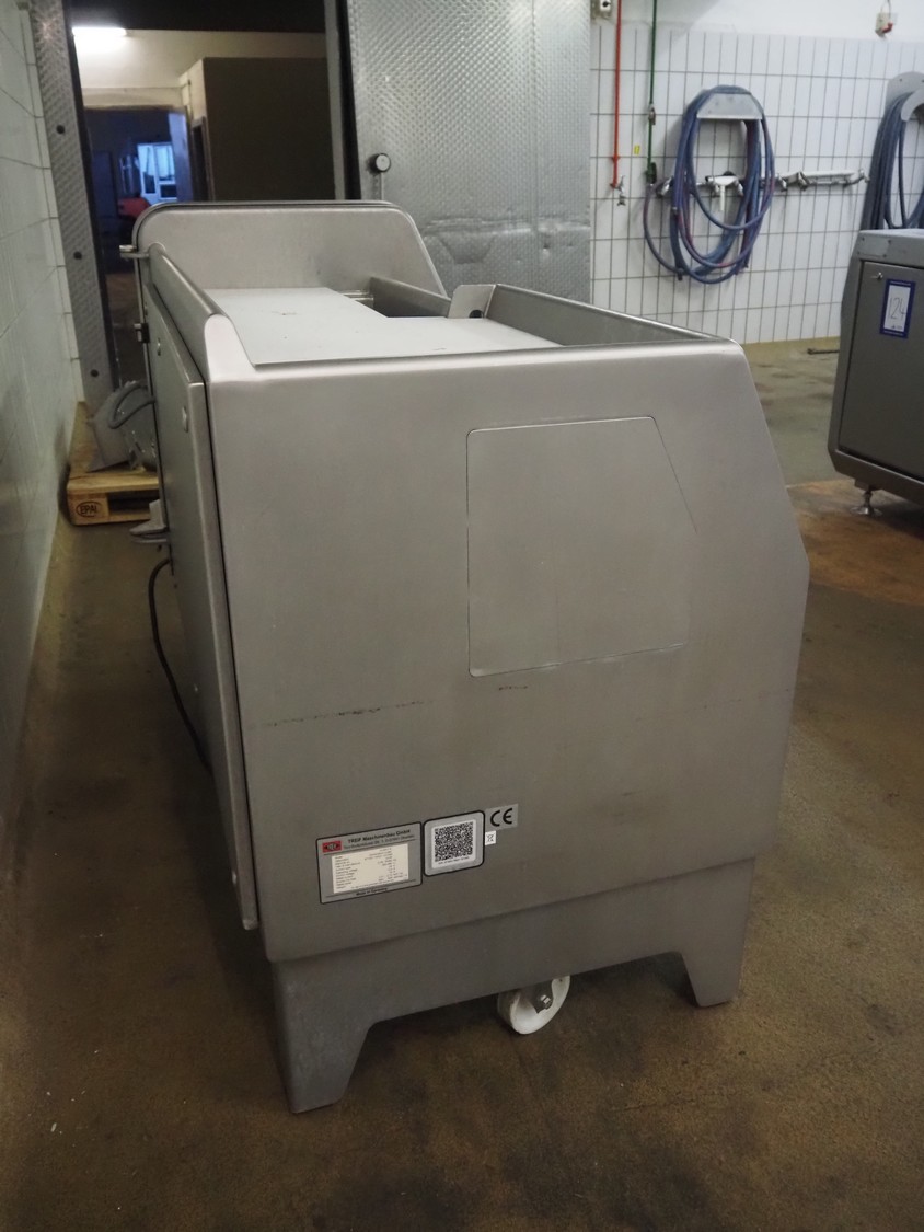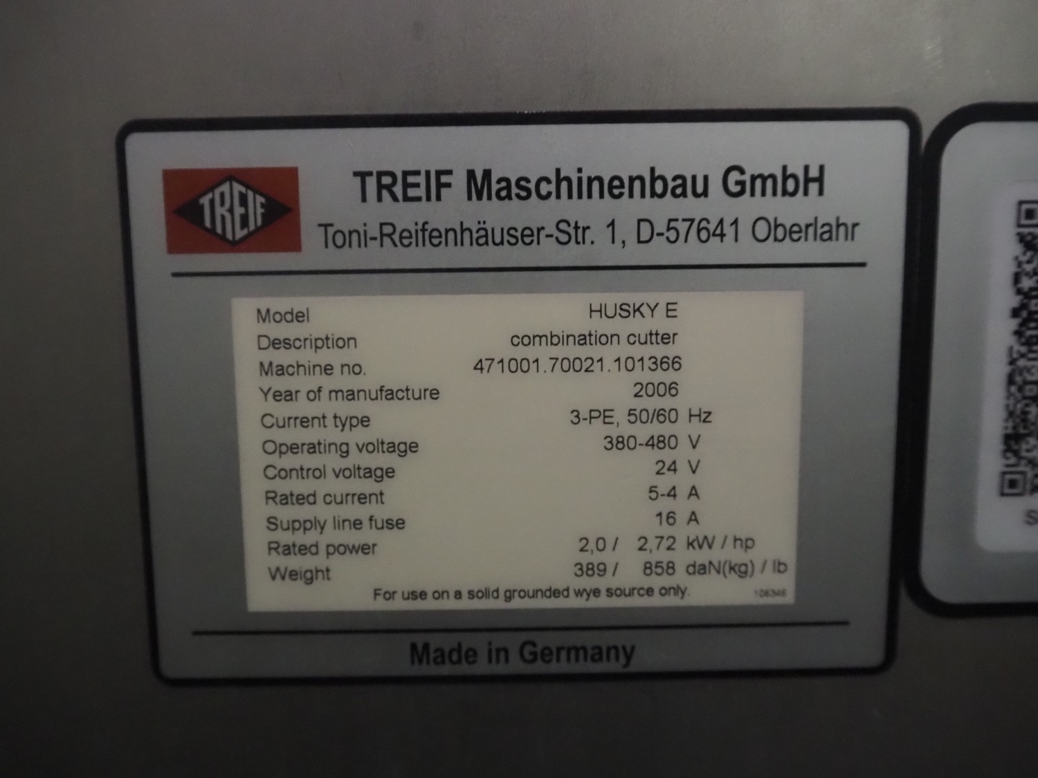 Treif Maschinenbau GmbH mobile dicer, model: HUSKY E, machine number: 471001.70021.101366, year of construction: 2006, 380/480 V, 3 Ph, 50/60 Hz, 16 A, 2 kW, weight: 389 kg, dimensions chamber: 95 mm x 95 mm, total dimensions: 2260 mm x 850 mm x 1200 mm. Including pallet with parts.